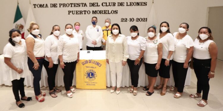 Puerto Morelos, Quintana Roo, 22 de octubre de 2021.— La presidenta municipal de Puerto Morelos, Blanca Merari Tziu Muñoz, atestiguó hoy la toma de protesta de la mesa directiva del primer Club de Leones en el municipio, la cual es presidida por Juana María Chacón Canché. José Antonio Cortez y Quevedo Barrientos, gobernador del Distrito B-8 México, tomó protesta a la mesa directiva del Club ...