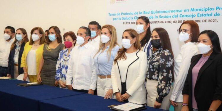 Playa del Carmen, Quintana Roo, 2 de diciembre de 2021.— La presidenta municipal de Puerto Morelos, Blanca Merari Tziu Muñoz suscribió hoy el acuerdo por el cual Puerto Morelos se sumó a la Red Quintanarroense en Municipios Promotores de la Salud para el periodo 2021-2024, cuyos integrantes rindieron protesta ante el gobernador Carlos Joaquín González. En este marco, la Alcaldesa reafirmó el compromiso de su ...