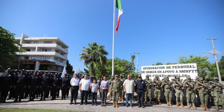Puerto Morelos, Quintana Roo, 2 de julio de 2022.- La alcaldesa Blanca Merari Tziu Muñoz dio la bienvenida a los elementos de la Secretaría de Marina (Semar) que, desde hoy, se integran a las labores de vigilancia que lleva a cabo la Secretaría municipal de Seguridad Pública y Tránsito, con el objetivo de proteger a la ciudadanía y a los turistas y combatir a la ...