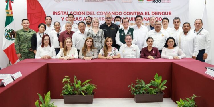 Cancún, Quintana Roo, 4 de octubre de 2023.- La presidenta municipal Blanca Merari Tziu Muñoz acompañó este día a la gobernadora Mara Lezama Espinosa durante la instalación del “Comando contra el dengue y otras arbovirosis en Quintana Roo”, que fortalecerá las acciones para el cuidado de la salud de la población. De igual forma se hizo entrega de las constancias de basificación del personal de ...