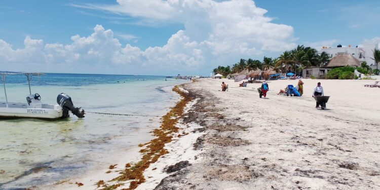 REPORTAN BAJO RECALE DE SARGAZO EN PUERTO MORELOS