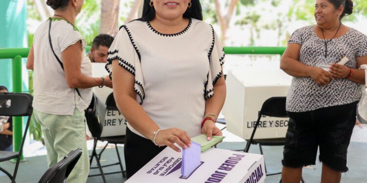 Puerto Morelos, Quintana Roo, 1 de junio de 2025.-- Luego de emitir su voto en la elección de las personas que ocuparán diversos cargos del Poder Judicial de la Federación, la presidenta municipal Blanca Merari Tziu Muñoz hizo un llamado a la participación ciudadana en esta jornada histórica. Asimismo, dijo que, de acuerdo con los reportes de la autoridad electoral, en el municipio se instalaron ...
