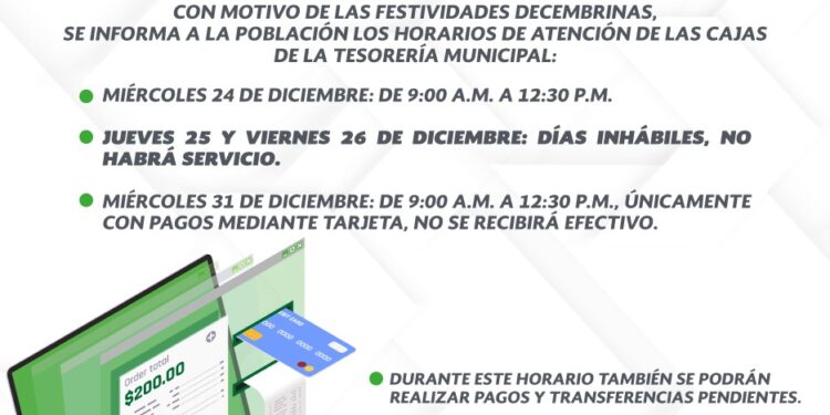 INFORMA AYUNTAMIENTO DE PUERTO MORELOS HORARIOS DE ATENCIÓN POR FESTIVIDADES DECEMBRINAS