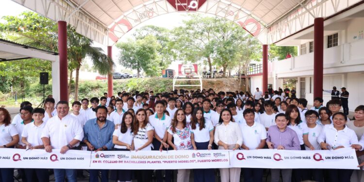 Puerto Morelos, Quintana Roo, 6 de marzo de 2026.— Con el objetivo de fortalecer la infraestructura educativa y brindar espacios dignos para la comunidad estudiantil, la gobernadora del estado, Mara Lezama Espinosa, y la presidenta municipal de Puerto Morelos, Blanca Merari Tziu Muñoz, entregaron el nuevo domo deportivo del plantel del Colegio de Bachilleres en este municipio. Durante el acto de inauguración, la presidenta municipal ...