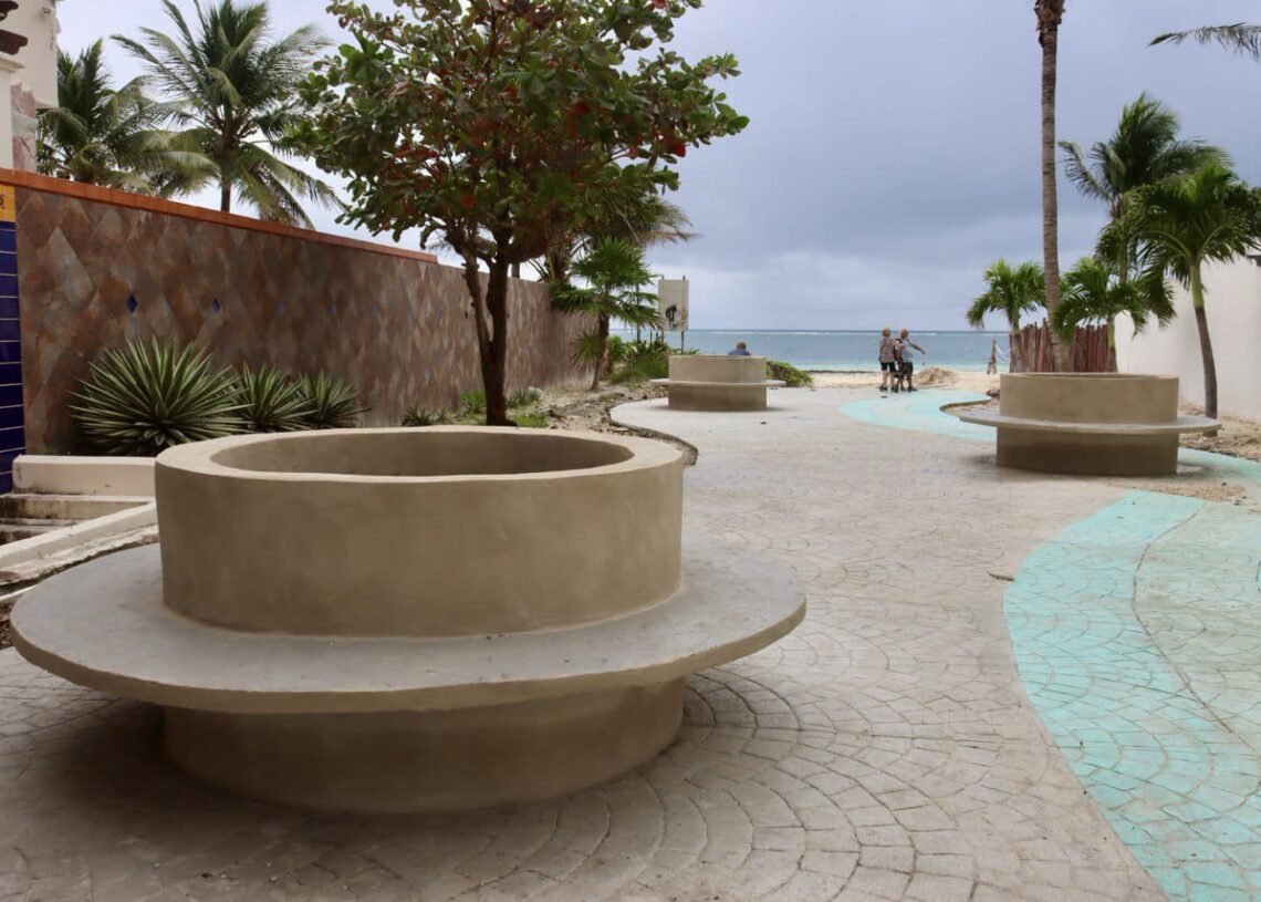 Con las “bocas de tormenta” el agua de lluvia será absorbida mediante unas rejillas y se irá directamente al manto freático, Además, en las jardineras laterales, que tienen estampado de concreto, se dejó un espacio para rescatar plantas costeras nativas.