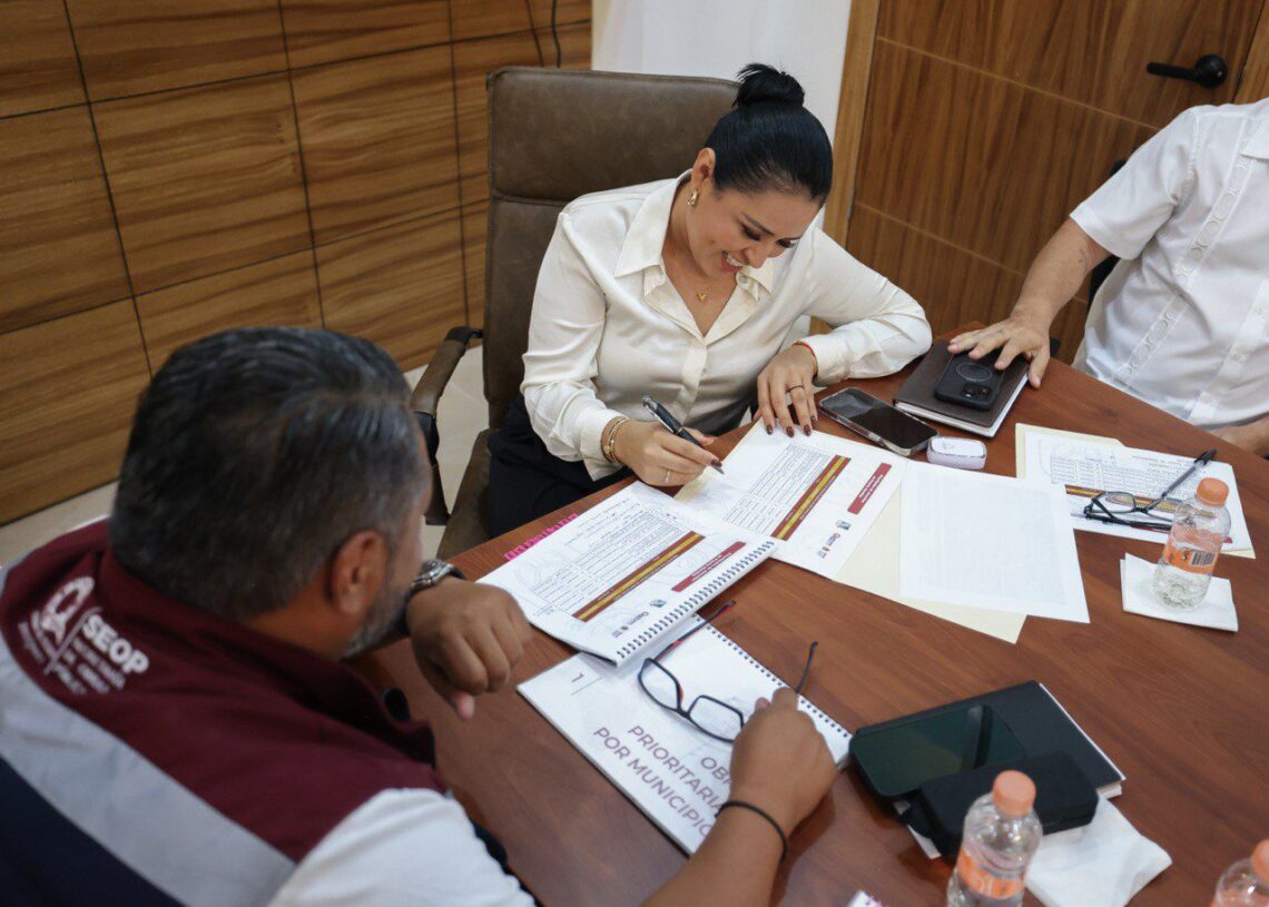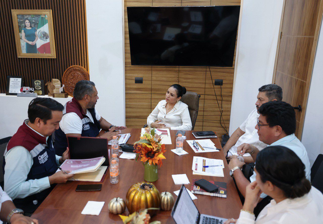 Puerto Morelos, Quintana Roo a 24 de octubre de 2025.- La presidenta municipal Blanca Merari Tziu Muñoz, recibió en su despacho al secretario de Obras Públicas de Quintana Roo (SEOP), Arq. José Rafael Lara Díaz, con la finalidad de dar seguimiento a los acuerdos establecidos con la gobernadora Mara Lezama para la planeación de obra de infraestructura conjunta entre el Estado y el Municipio para el ejercicio 2026.