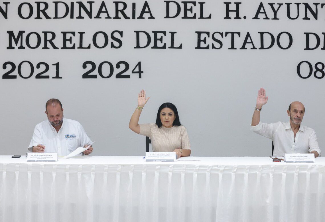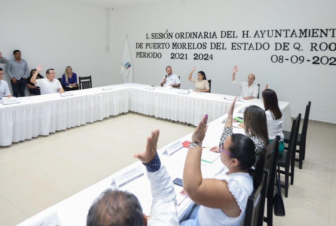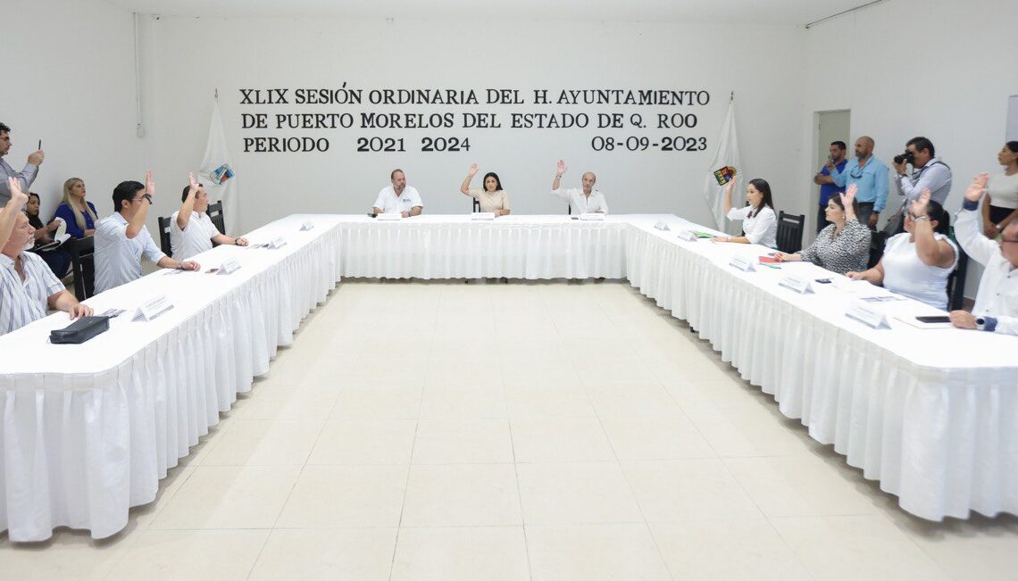 Puerto Morelos, Quintana Roo, 8 de septiembre de 2023.— El Cabildo de Puerto Morelos aprobó hoy en sesiones ordinarias consecutivas, la XLIX y la L, los acuerdos para crear el Fideicomiso de Inversión y Administración del Derecho de Saneamiento Ambiental (DSA) y el Reglamento de Mejora Regulatoria, ambos del municipio de Puerto Morelos.