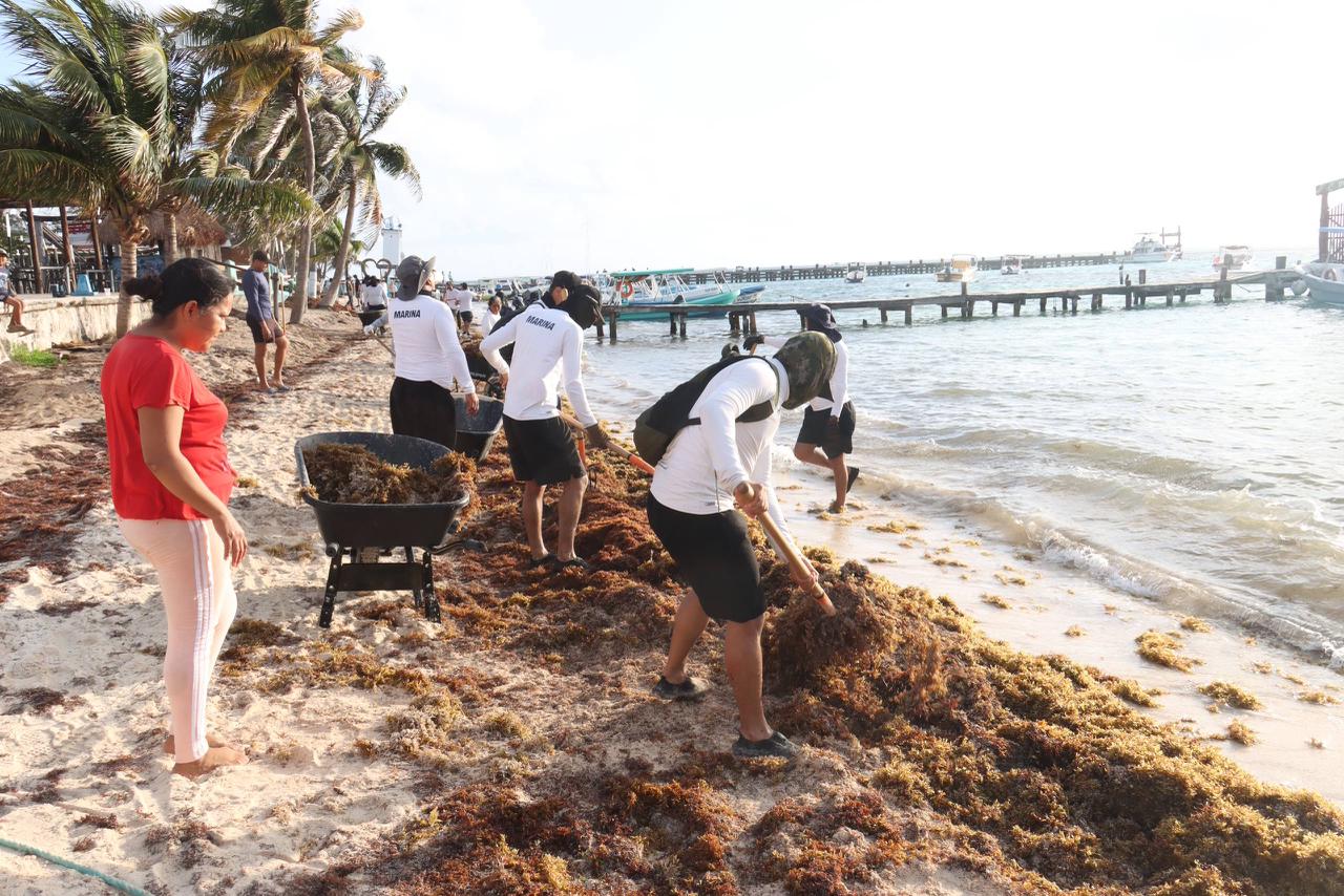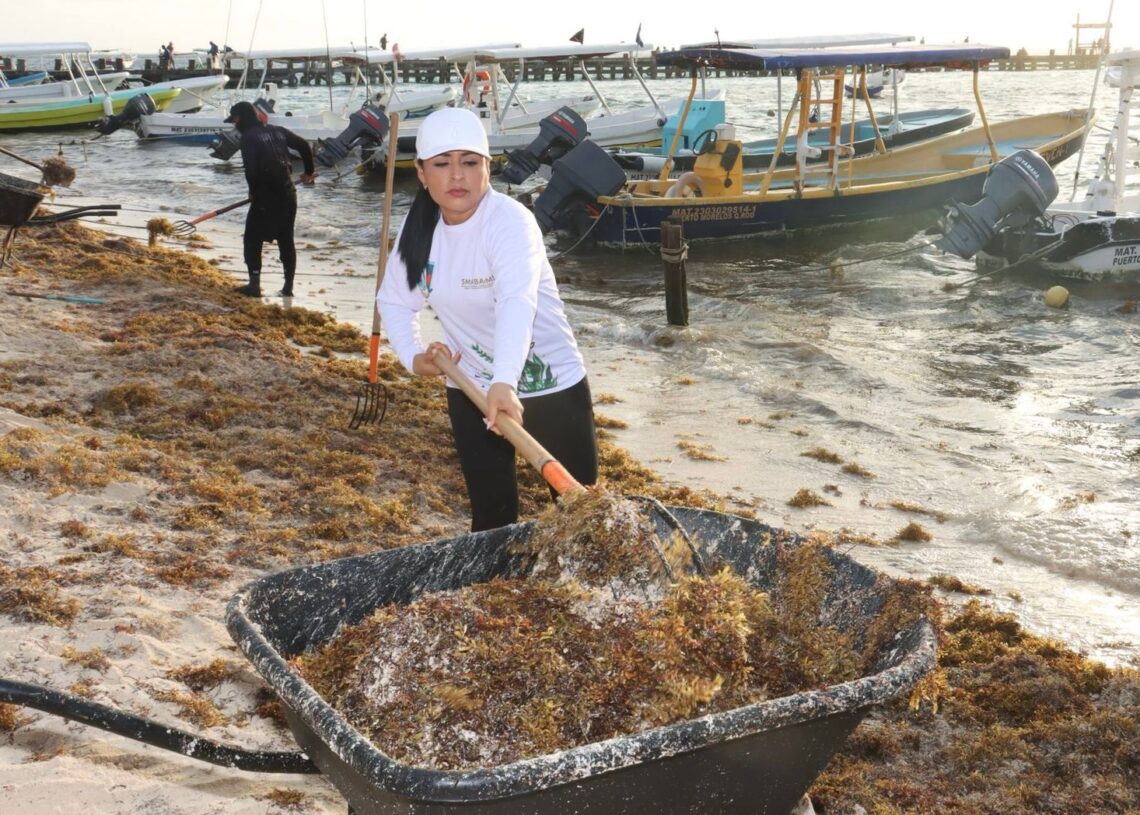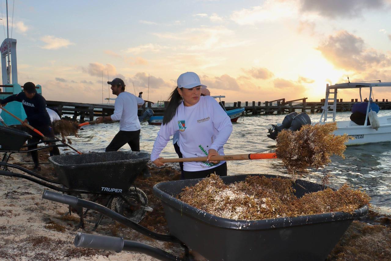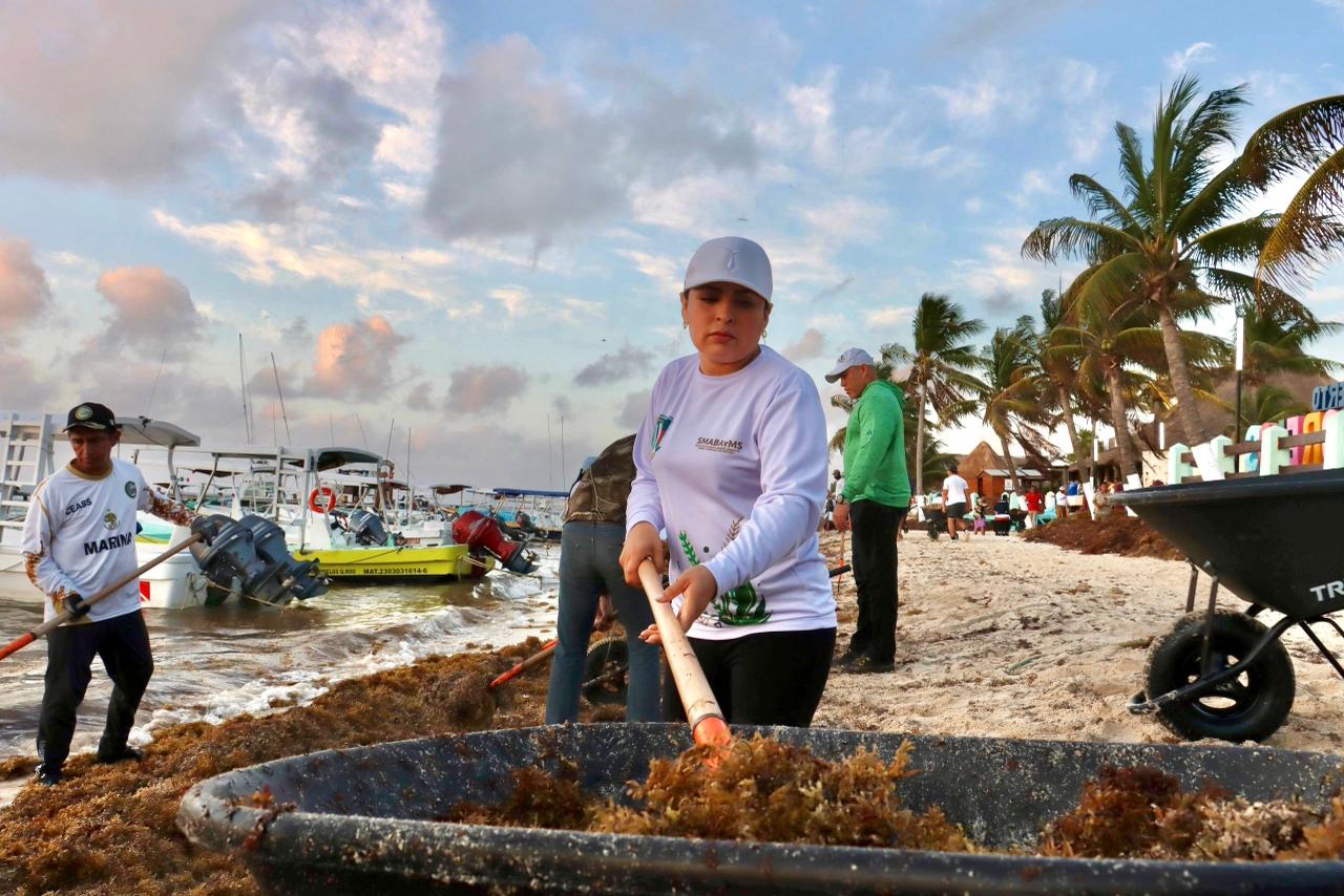 La alcaldesa informó que en estas labores participaron 50 trabajadores de la Secretaría de Medio Ambiente, Bienestar Animal y Movilidad Sustentable, así como de Zona Federal Marítimo Terrestre (Zofemat), quienes desde temprana hora iniciaron las acciones de recolección del alga en la franja costera del municipio. A estas tareas también se sumaron 20 elementos de la Secretaría de Marina, quienes apoyan en el retiro y manejo del sargazo.