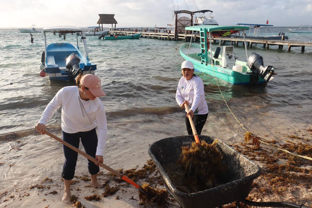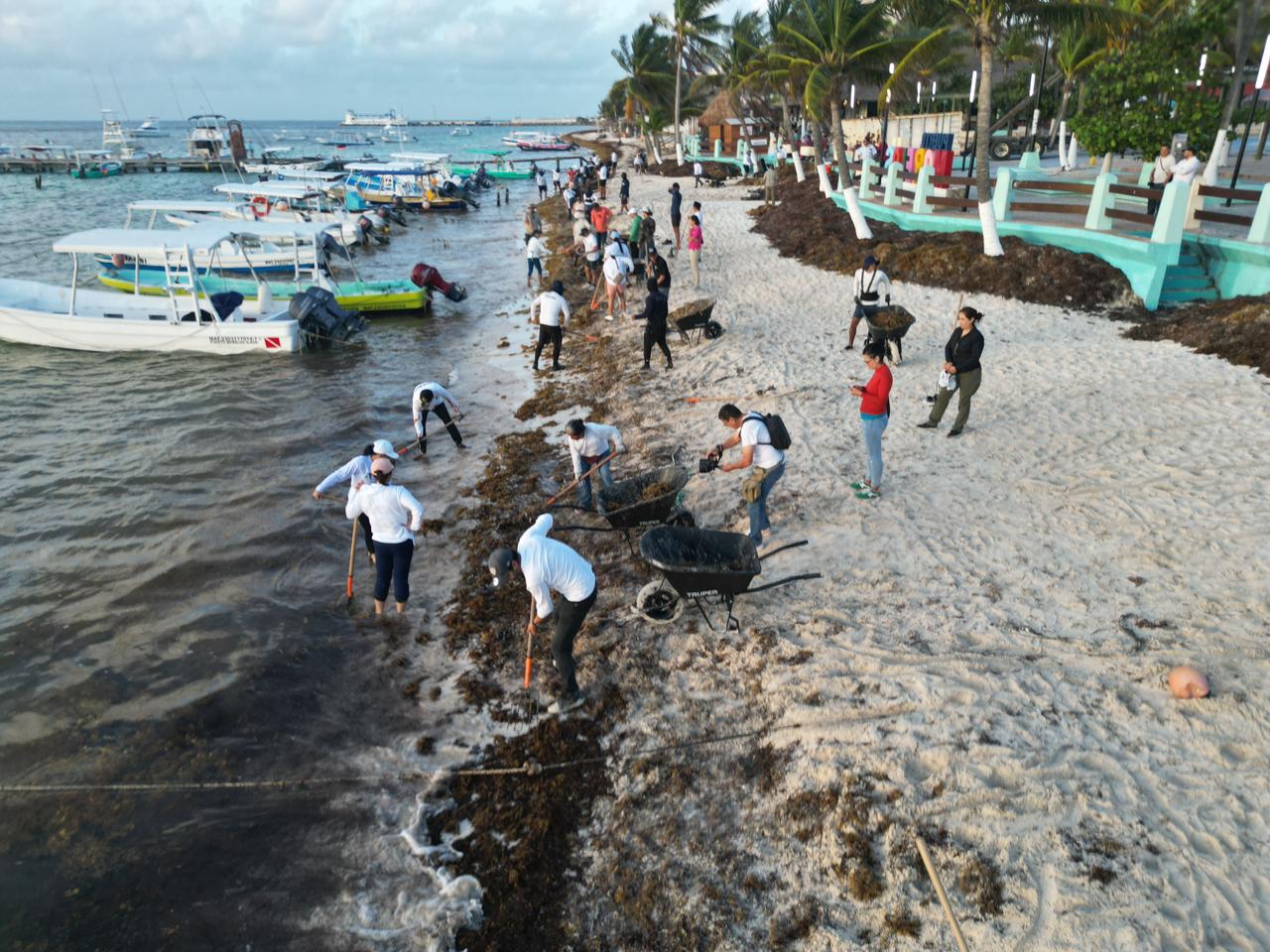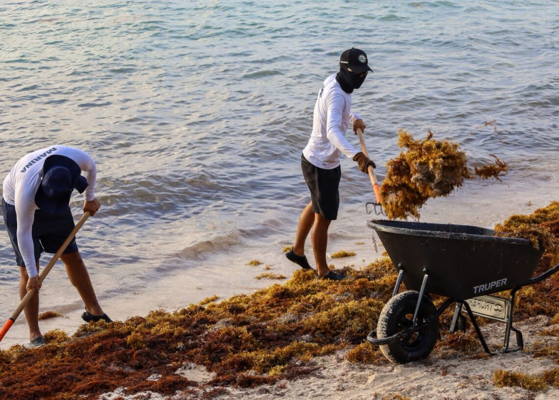 La alcaldesa informó que en estas labores participaron 50 trabajadores de la Secretaría de Medio Ambiente, Bienestar Animal y Movilidad Sustentable, así como de Zona Federal Marítimo Terrestre (Zofemat), quienes desde temprana hora iniciaron las acciones de recolección del alga en la franja costera del municipio. A estas tareas también se sumaron 20 elementos de la Secretaría de Marina, quienes apoyan en el retiro y manejo del sargazo.