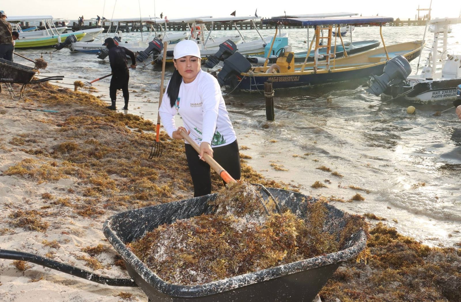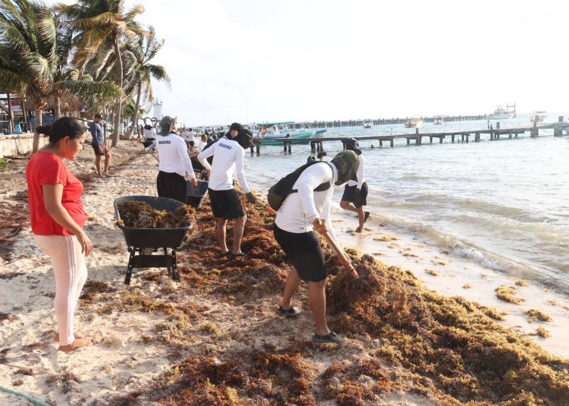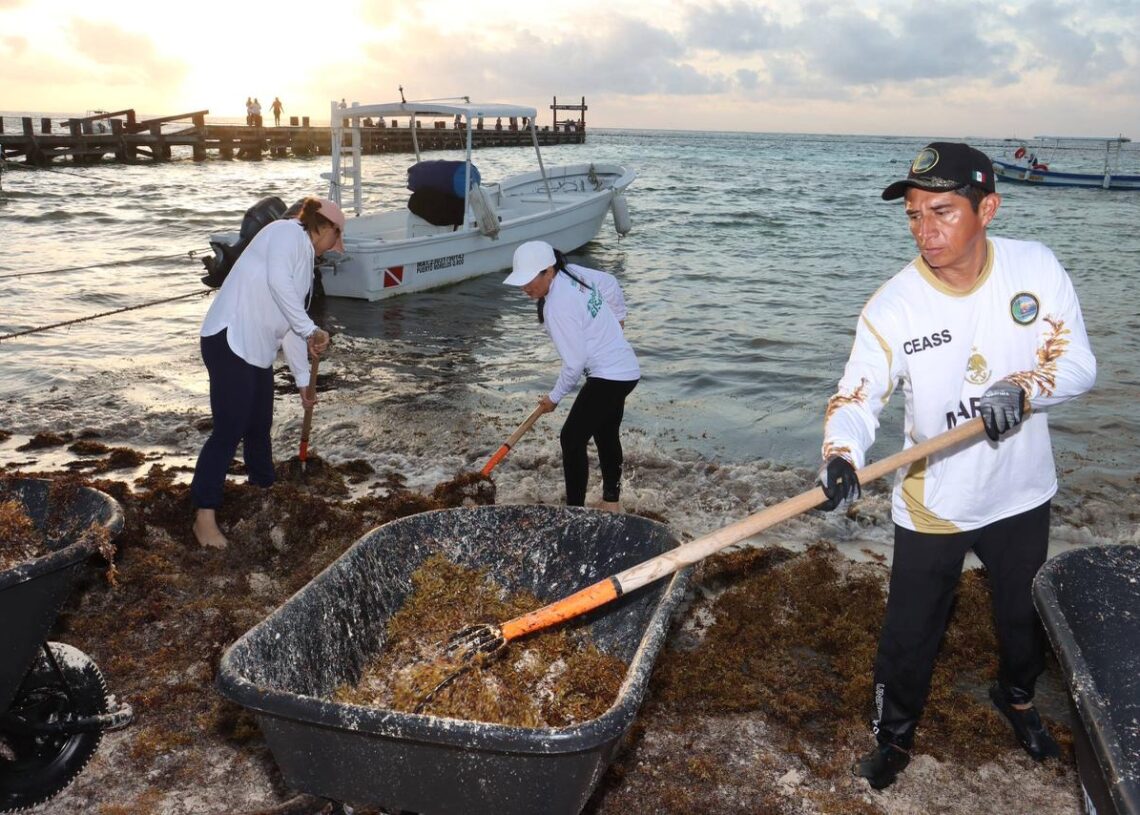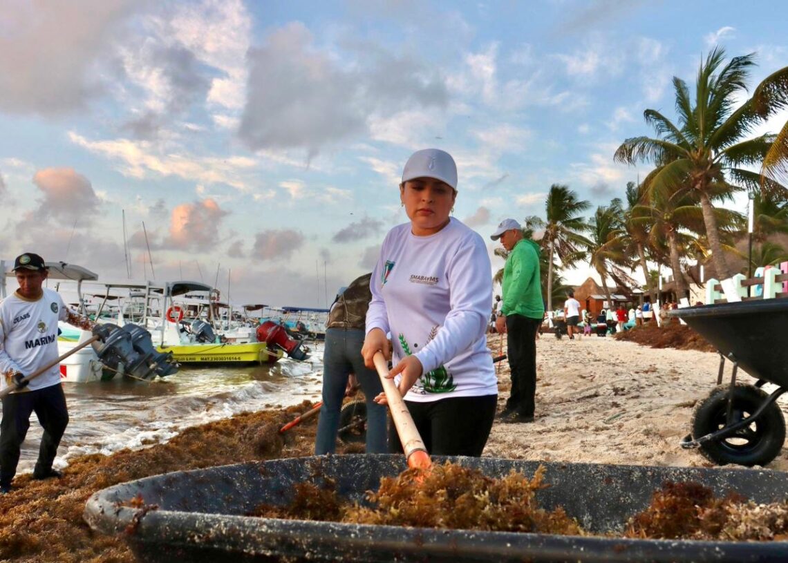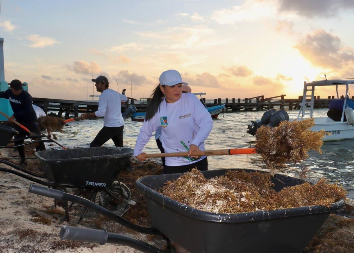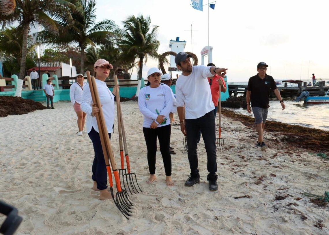 Puerto Morelos, Quintana Roo, 7 de marzo de 2026.— Con el objetivo de mantener las playas limpias y en óptimas condiciones para residentes y visitantes, la presidenta municipal Blanca Merari Tziu Muñoz puso en marcha la jornada de limpieza ante el arribo de sargazo en las costas de Puerto Morelos.