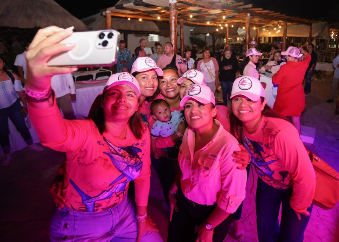 Puerto Morelos, Quintana Roo, 7 de julio de 2023.- Con la playa Ventana al Mar como escenario y un ambiente de unión y fuerza de mujeres, la presidenta municipal Blanca Merari Tziu Muñoz asistió a la cena de capitanas del sexto Torneo Internacional de Pesca Femenil, “La Diosa del Mar”, que reúne a más de 40 embarcaciones de Puerto Morelos, Isla Mujeres, Cozumel, Cancún, del Estado de Oaxaca y Texas, en Estados Unidos.
