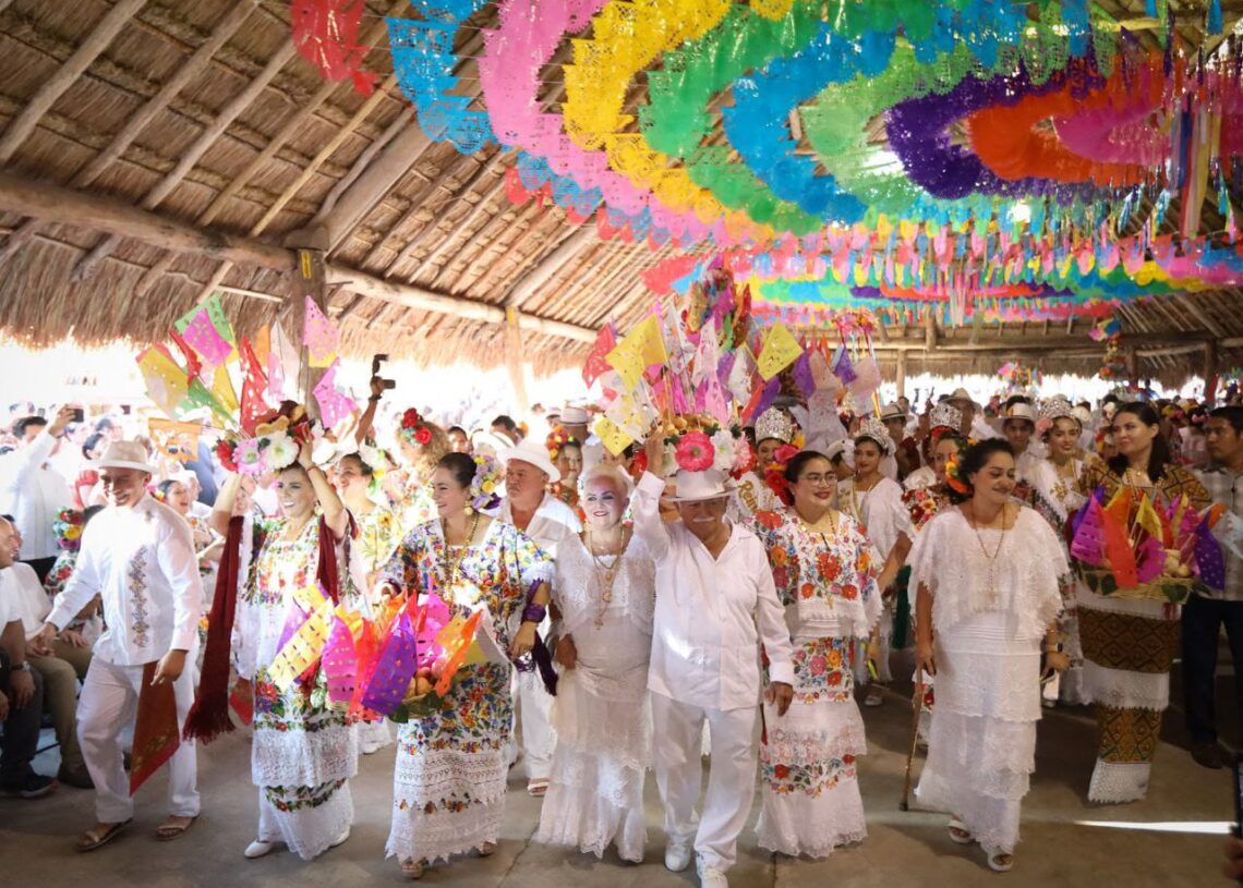 Las tradiciones son importantes porque transmiten valores, hechos históricos y nos identifican como comunidad, explicó, ataviada con el tradicional terno y entre jaranas, algarabía y el tradicional “Baile de la cabeza de cochino”, en la palapa principal de El Cedral.