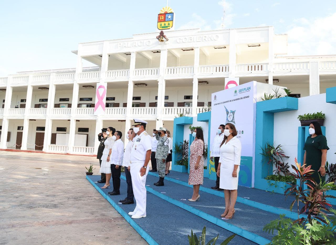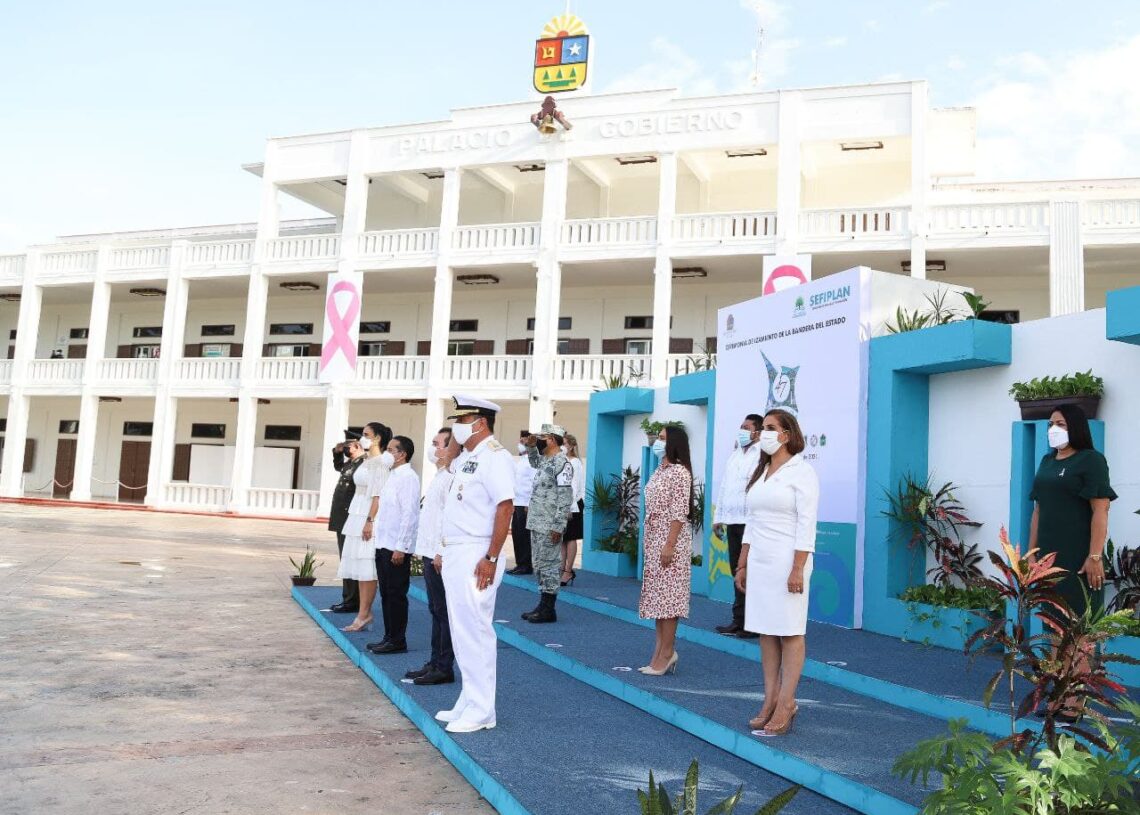 La Alcaldesa asistió hoy a los festejos oficiales conmemorativos del 47º aniversario de la Entidad, que comenzaron con el Izamiento de la Bandera de Quintana Roo en la Plaza Cívica del Palacio de Gobierno y continuaron en el Congreso del Estado, con la Sesión Solemne en la que el gobernador Carlos Joaquín González dirigió un mensaje a los quintanarroenses.