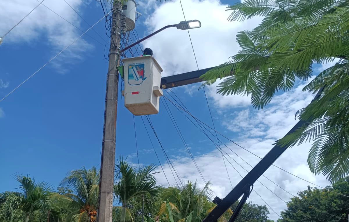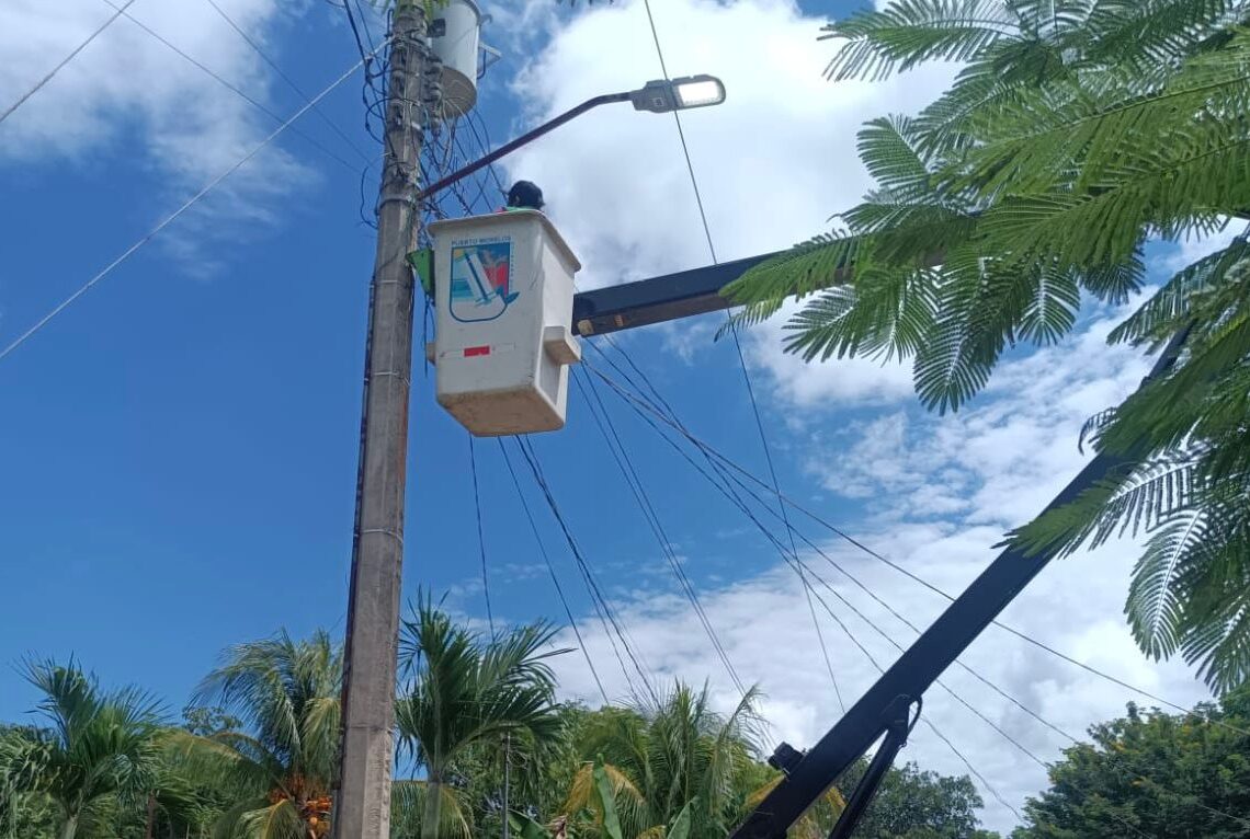 Puerto Morelos, Quintana Roo a 27 de octubre de 2025.- La Secretaría de Servicios Públicos de Puerto Morelos a través de la dirección de Alumbrado Público, mantiene en marcha el programa “Puerto Morelos Brilla”, para dotar de luz las calles de la cabecera municipal, así como de la delegación de Leona Vicario, indicó el secretario Leonel Salazar Trejo.