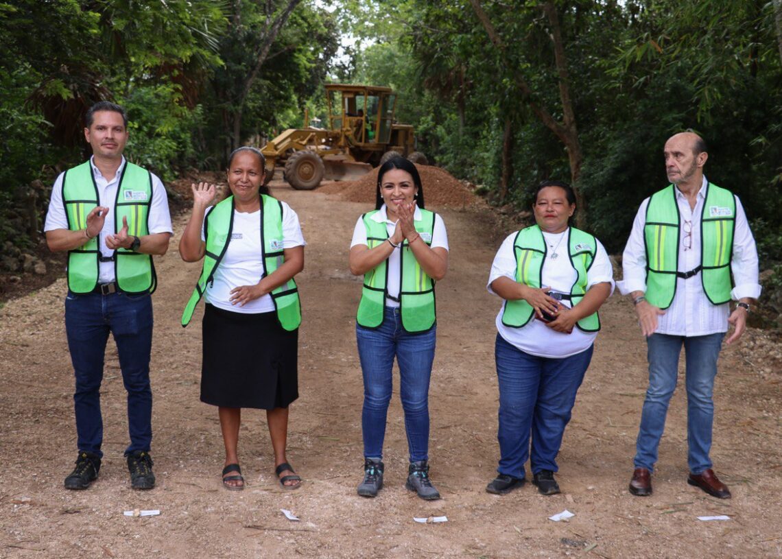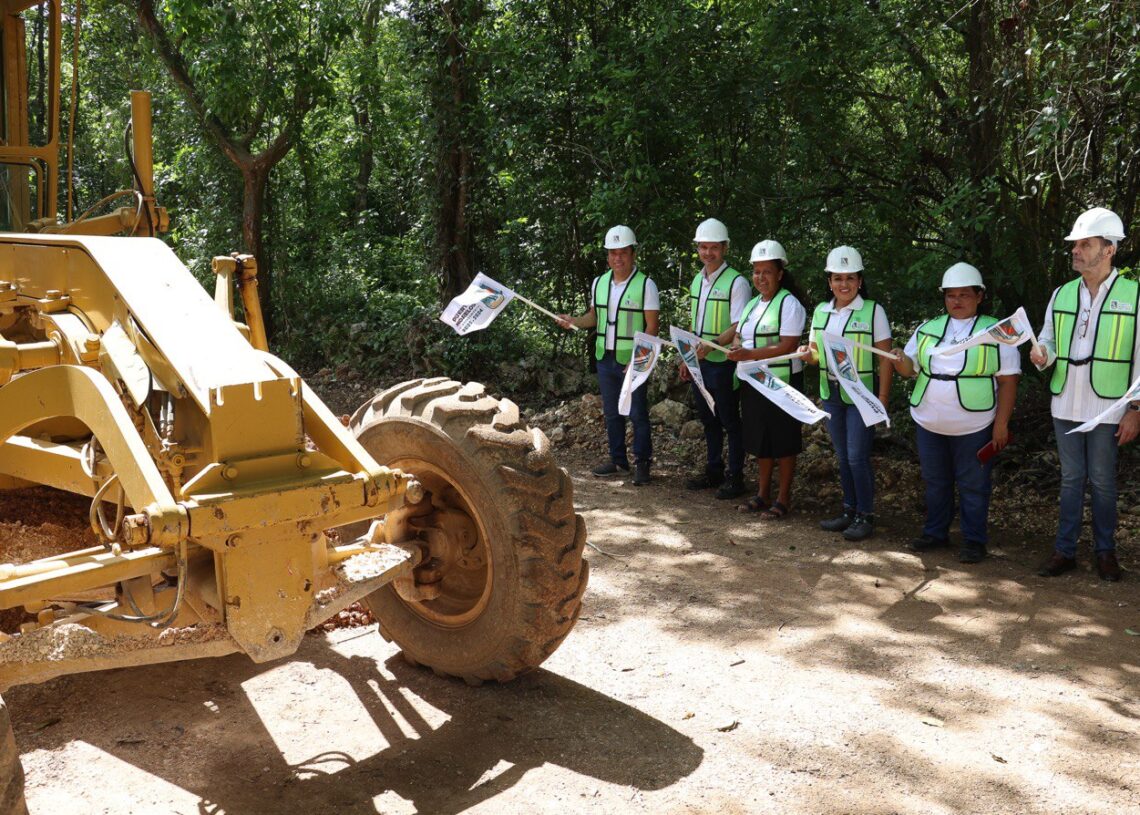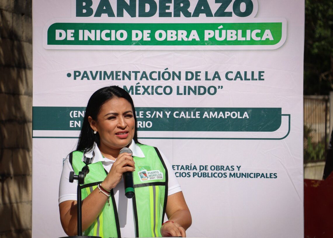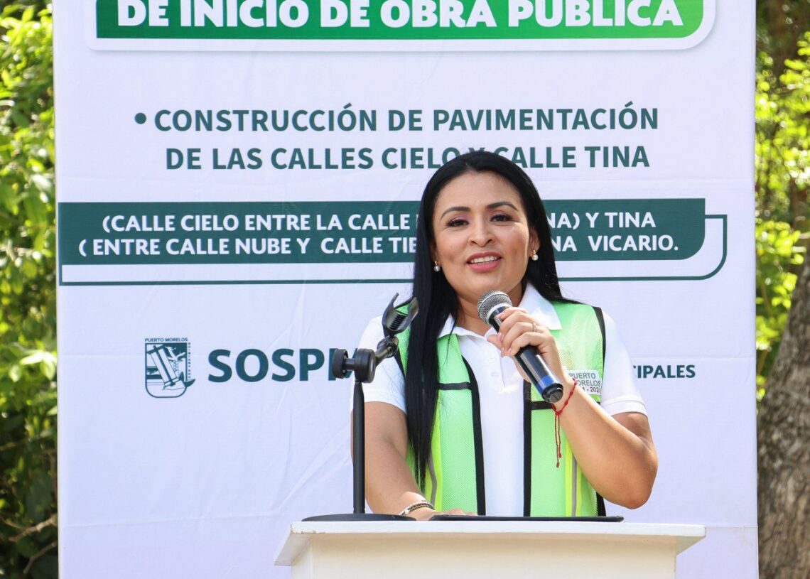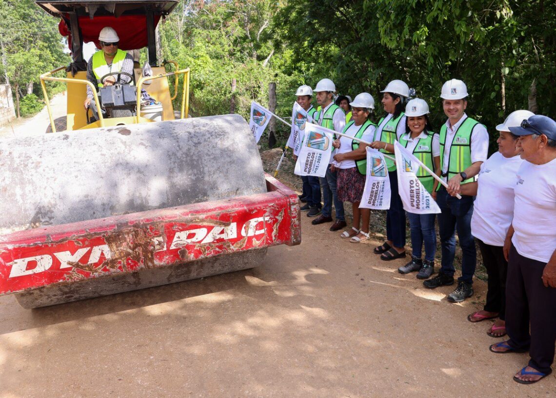 Leona Vicario, Puerto Morelos, Quintana Roo, 11 de julio de 2024.- La presidenta municipal Blanca Merari Tziu Muñoz dio hoy los banderazos de inicio de dos obras de pavimentación en esta comunidad, que mejorarán significativamente la calidad de vida de las familias y abonarán a hacer realidad la justicia social, gracias al compromiso cumplido por parte del Gobierno de Puerto Morelos.