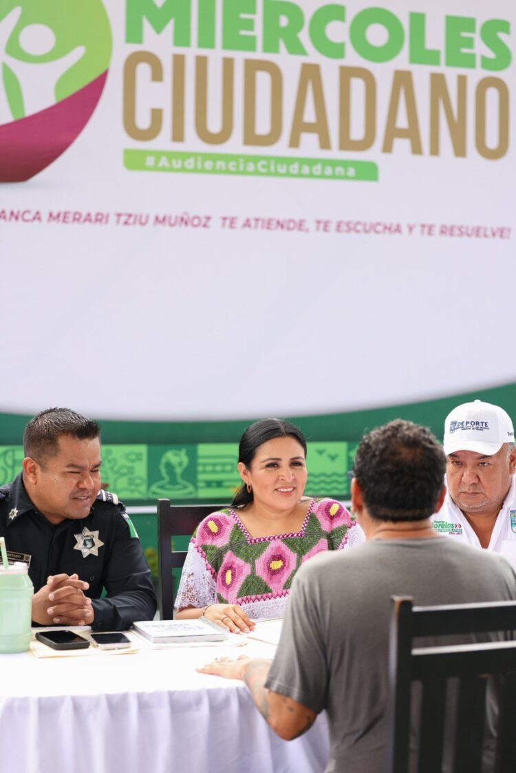 Puerto Morelos, Quintana Roo, 24 de septiembre.– Con el firme compromiso de gobernar de la mano del pueblo, la presidenta municipal Blanca Merari Tziu Muñoz puso en marcha el programa Miércoles Ciudadano, un espacio en el que ella misma, junto a titulares de dependencias municipales y estatales, escucha, atiende y da respuesta directa a las solicitudes e inquietudes de la ciudadanía.