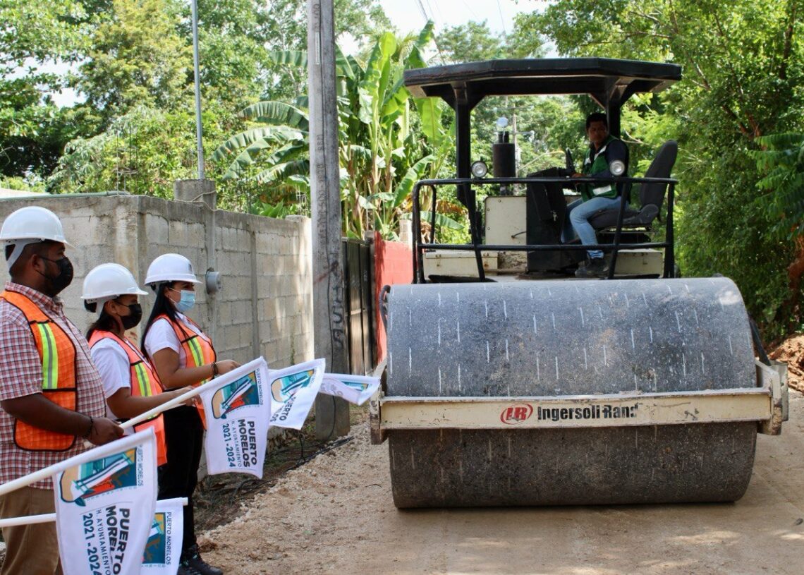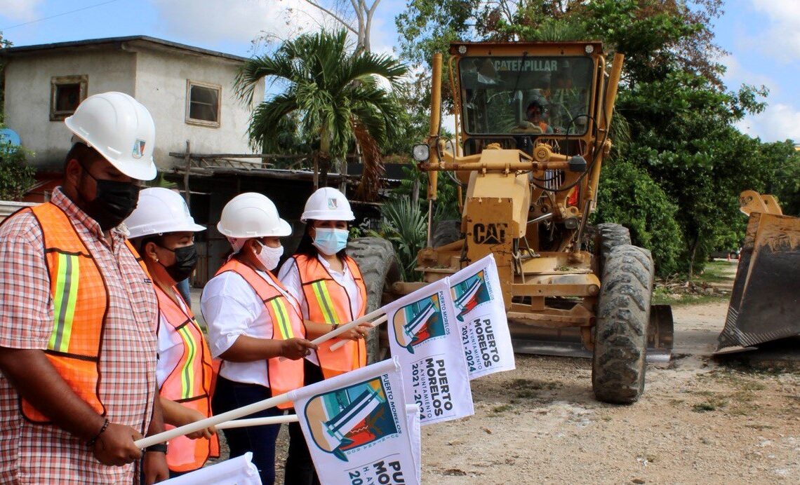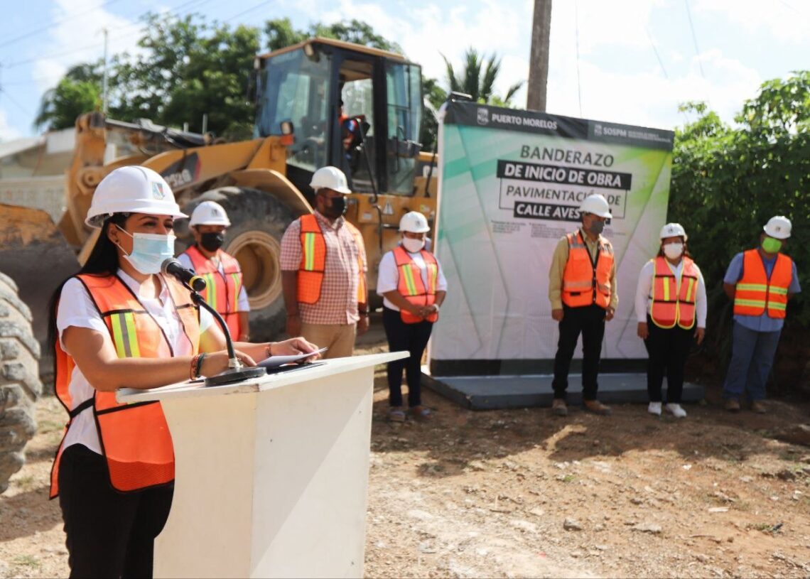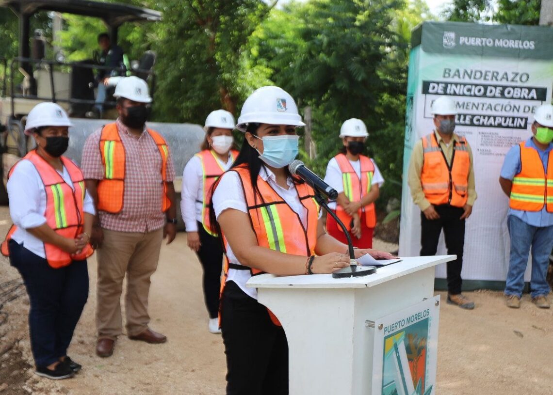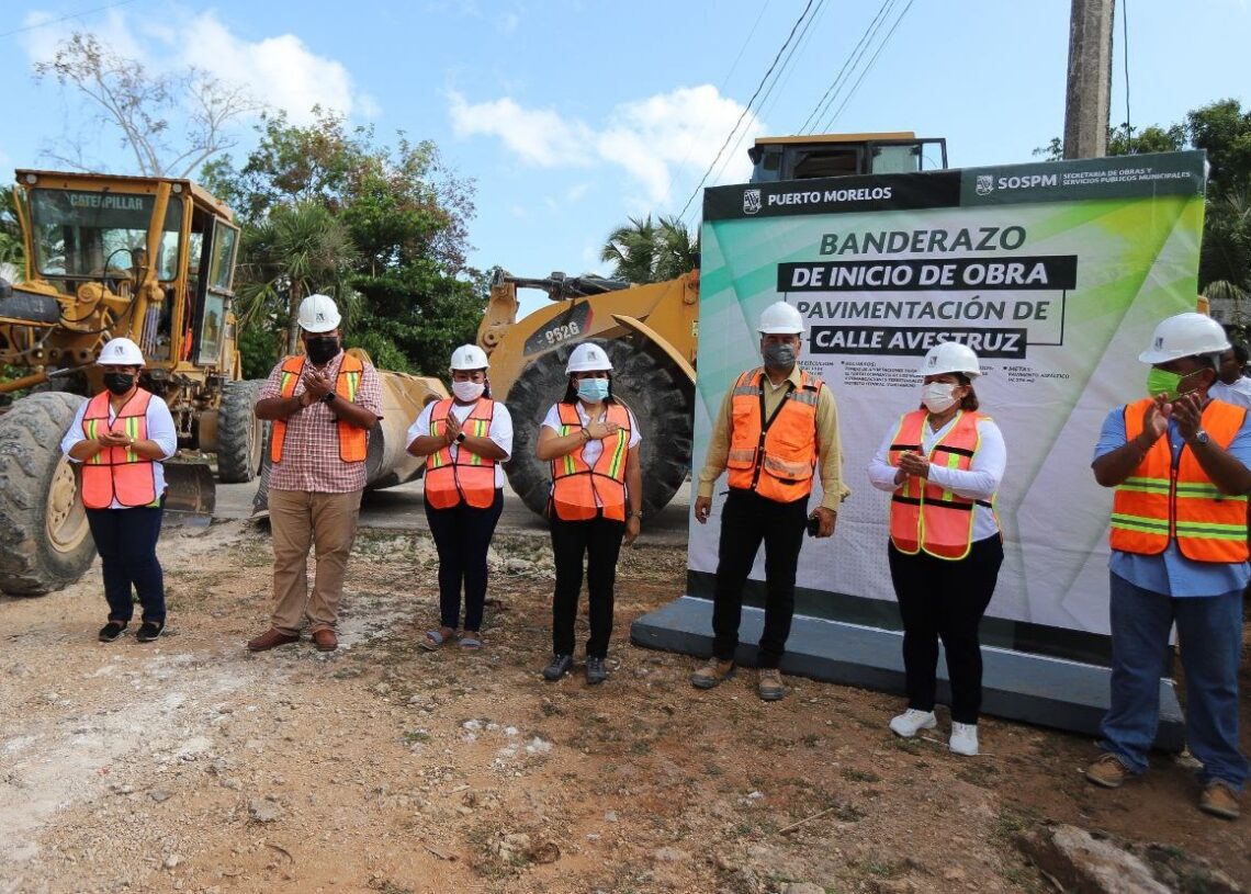 Leona Vicario, Puerto Morelos, Quintana Roo, 20 de julio de 2022.— La presidenta municipal Blanca Merari Tziu Muñoz dio esta mañana sendos banderazos para la pavimentación de 1 mil 208 metros cuadrados (223.30 metros lineales) en las calles Avestruz y Chapulín de esta delegación, con una inversión global de 1 millón 564 mil 565 pesos, provenientes del Fondo de Aportaciones para el Fortalecimiento de los Municipios y Demarcaciones Territoriales del Distrito Federal (Fortamun).