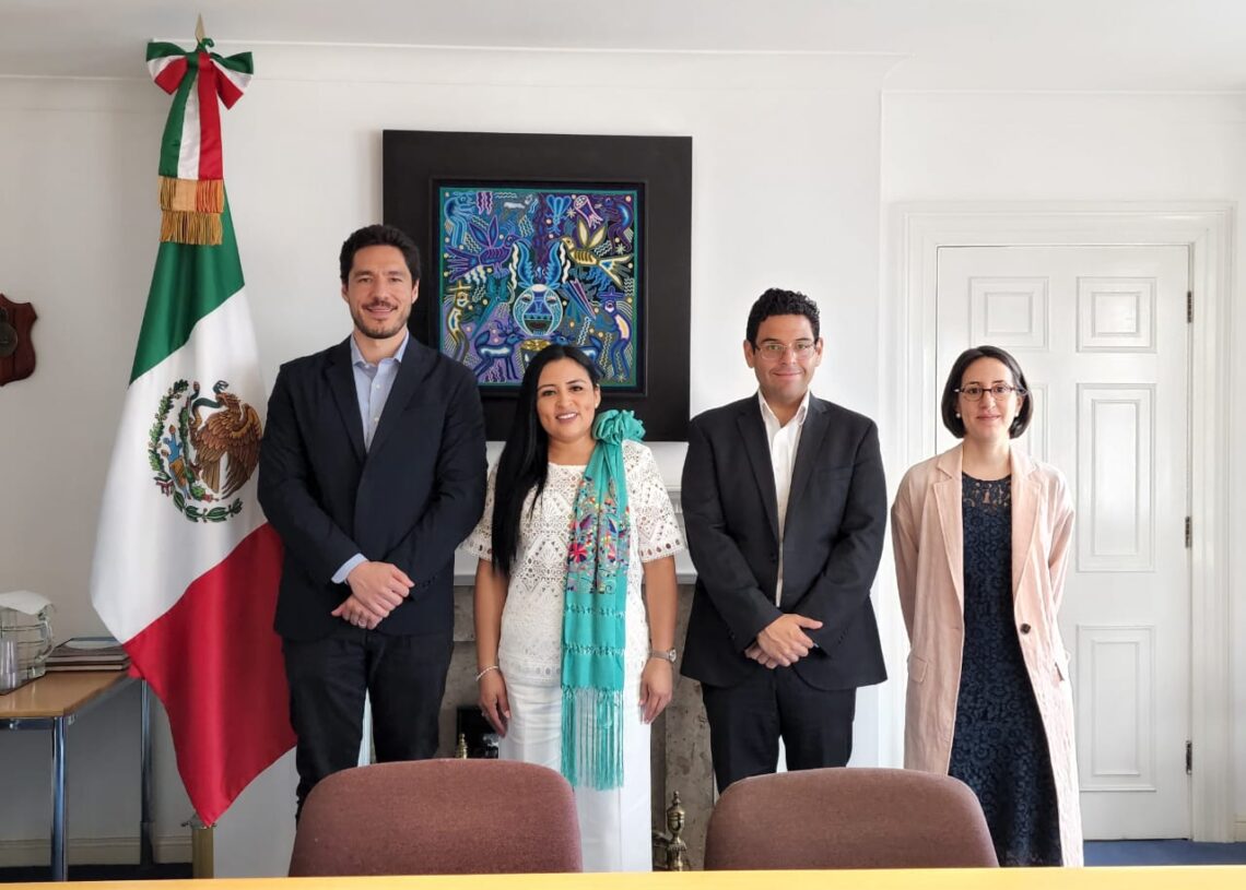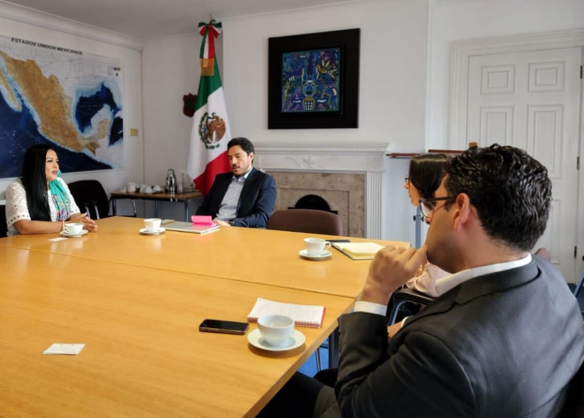 Londres, Inglaterra, 5 de agosto de 2022.- Fortalecer la promoción de Puerto Morelos como un destino turístico de clase mundial, exclusivo y sustentable, es una tarea prioritaria de mi administración, señaló la alcaldesa Blanca Merari Tziu Muñoz, en el marco de su visita a la embajada de México en esta ciudad, donde se reunió con los encargados de Asuntos Económicos y Políticos de la sede diplomática, Mariana Herrera-Salcedo y Octavio Perales Sánchez, respectivamente.