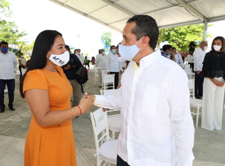 Cancún, Quintana Roo, 14 de octubre de 2021.— La presidenta municipal de Puerto Morelos, Blanca Merari Tziu Muñoz, asistió hoy a la inauguración de nueva infraestructura en la Universidad Tecnológica de Cancún (UTC), a cargo del gobernador Carlos Joaquín González y el rector de la casa de estudios, Julián Aguilar Estrada.