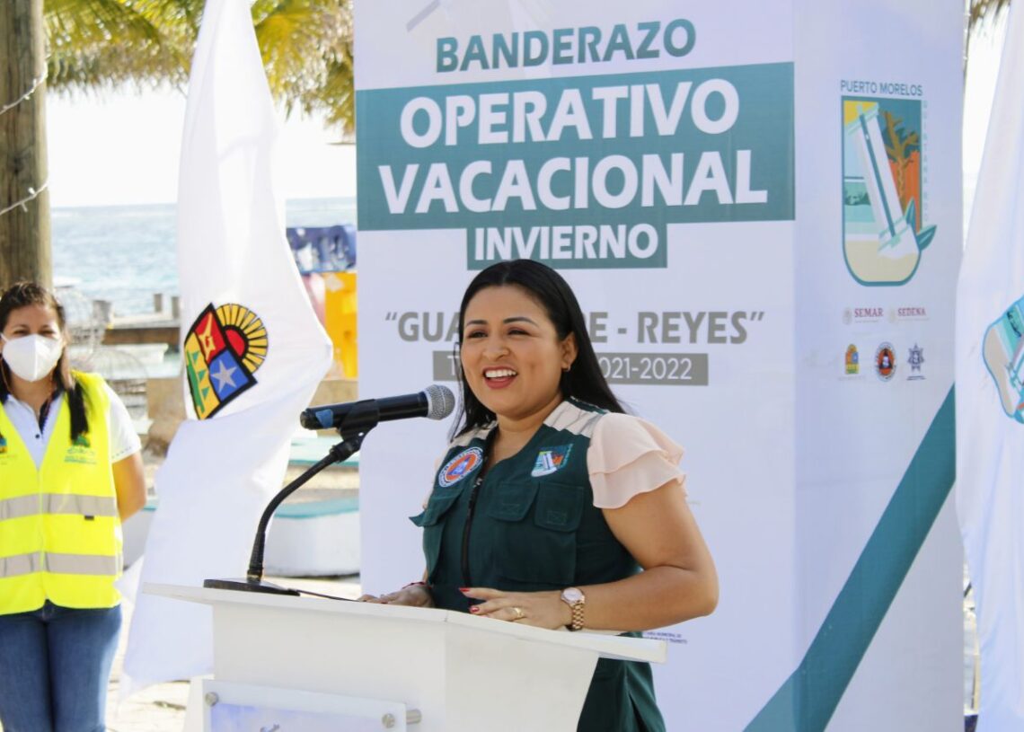 Puerto Morelos, Quintana Roo, 9 de diciembre de 2021.- La alcaldesa Blanca Merari Tziu Muñoz encabezó hoy el arranque del Operativo Vacacional de Invierno “Guadalupe-Reyes”, marco en el que reafirmó su compromiso de trabajar de manera coordinada con el Estado y la Federación, para ofrecer las medidas de seguridad necesarias para proteger a los habitantes del municipio y a los visitantes.