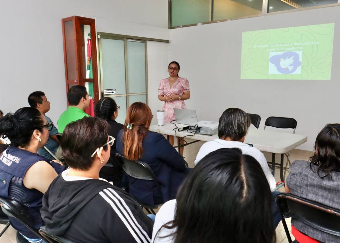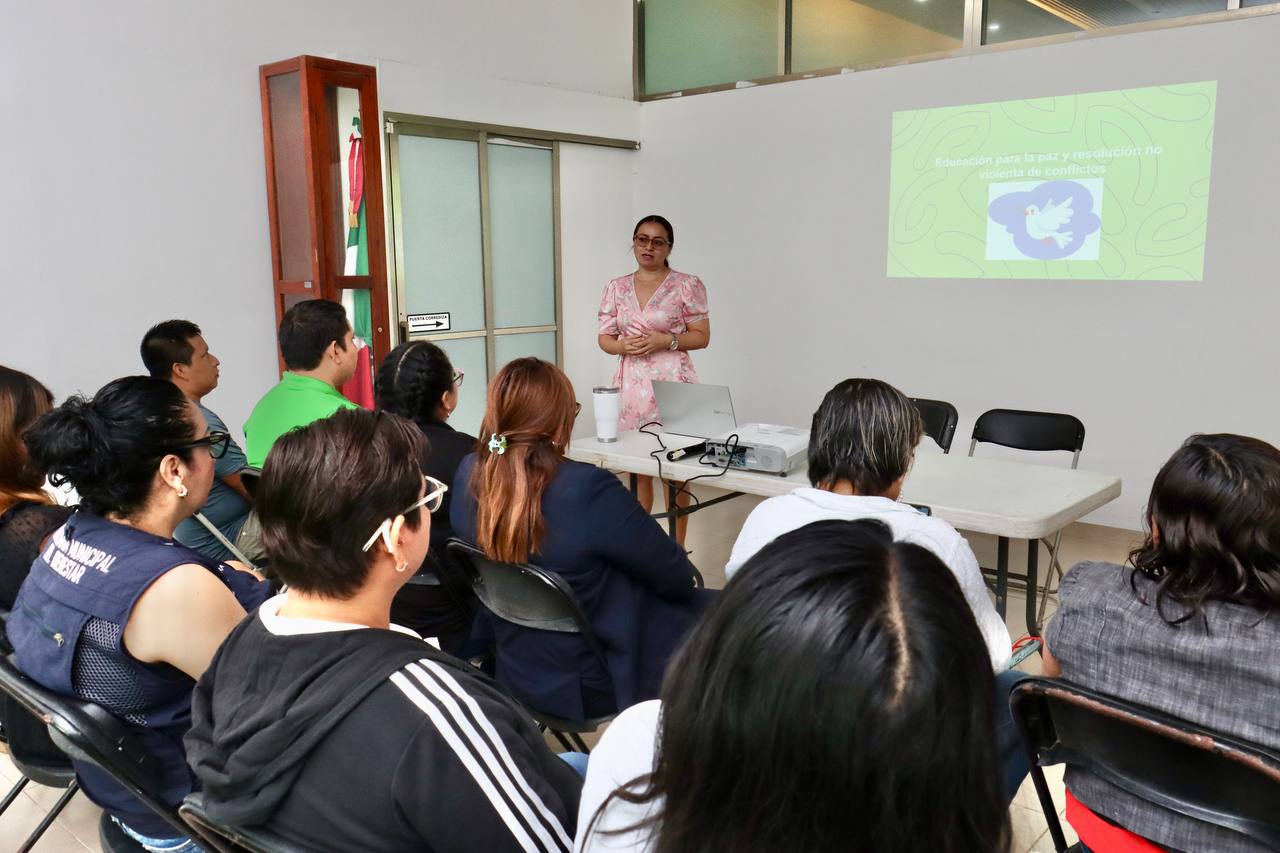 Los instructores Eladia Nohemí García Canto, Hugo David Pérez Ramírez y Jessica Guerrero Hernández destacaron la importancia de promover la convivencia pacífica, desarrollar habilidades para la resolución de conflictos y fortalecer valores como la igualdad, la diversidad cultural y el plurilingüismo.