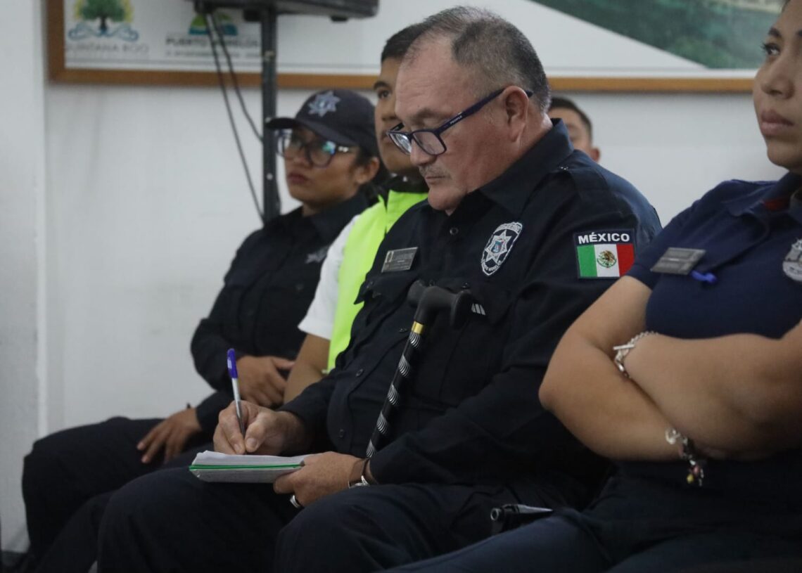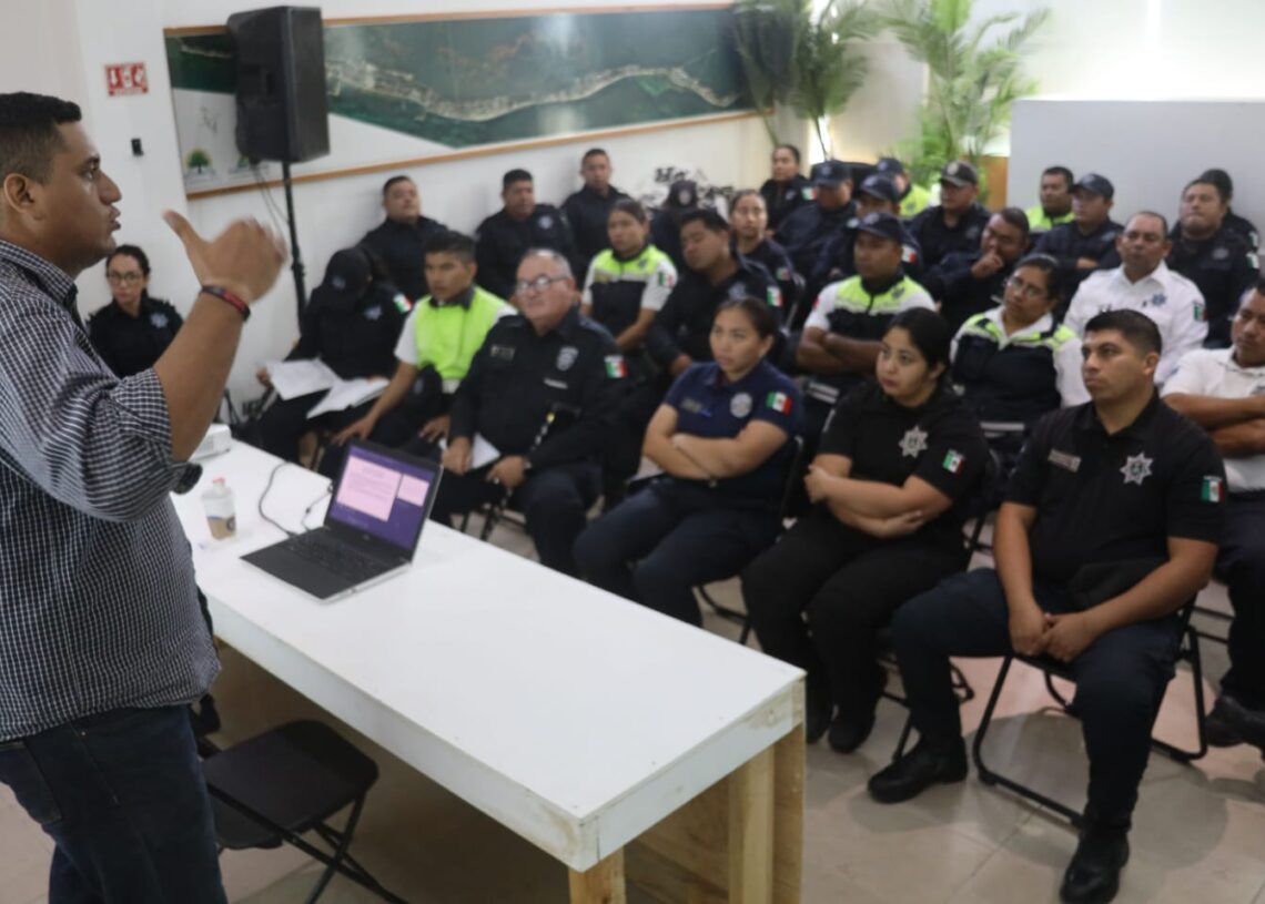 Puerto Morelos, Quintana Roo, 15 de febrero de 2025.– Como parte de las indicaciones de la Presidenta Municipal Blanca Merari Tziu Muñoz sobre la constante capacitación y preparación que se debe brindar a los trabajadores del Ayuntamiento, medio centenar de elementos de la Secretaría de Seguridad Ciudadana participaron en una plática denominada “Principios básicos sobre el empleo y uso de la fuerza y de armas de fuego por los funcionarios encargados de hacer cumplir la ley”.