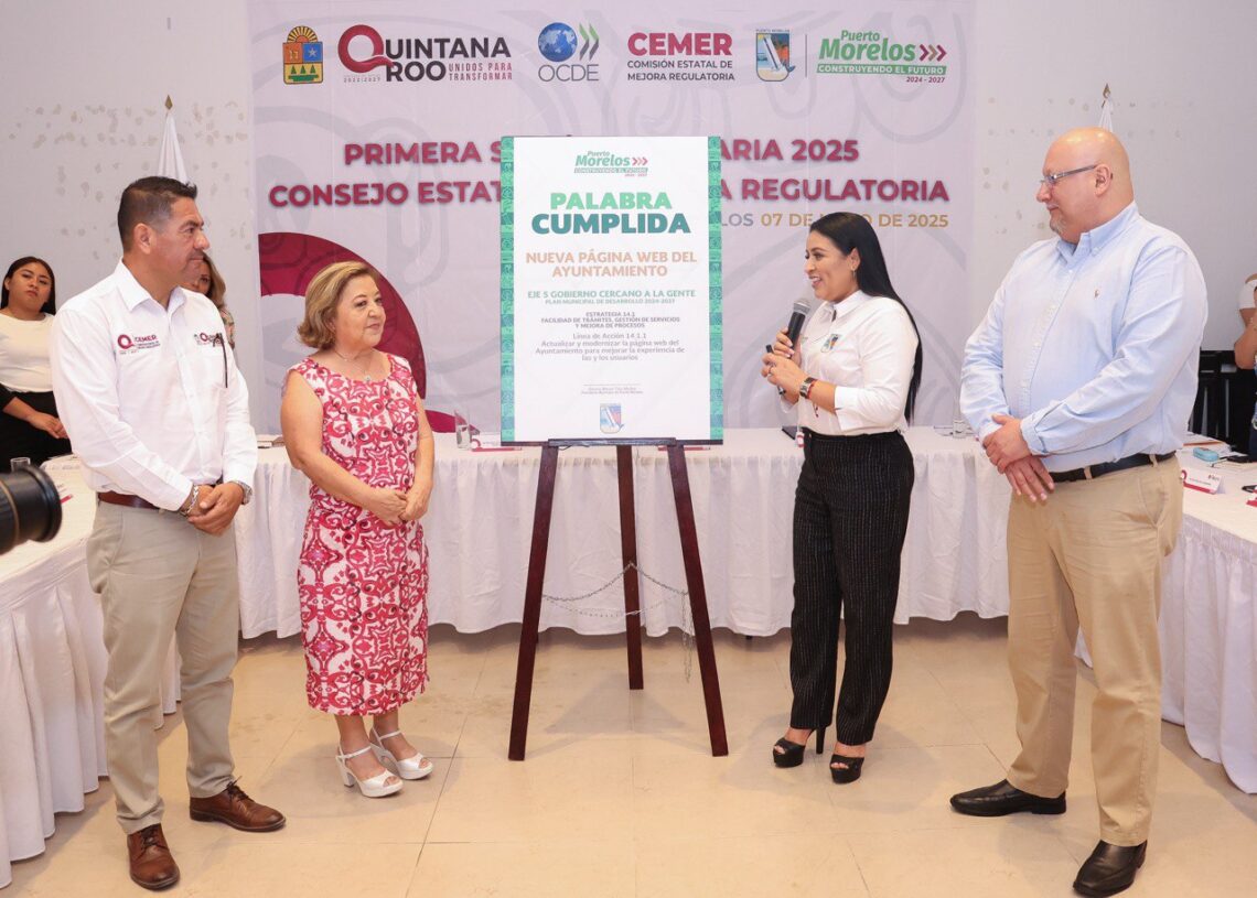 Puerto Morelos, Quintana Roo, 7 de mayo de 2025.— La presidenta municipal Blanca Merari Tziu Muñoz agradeció el apoyo recibido para que Puerto Morelos sea uno de los dos municipios del Estado que reporta mayor avance en materia de mejora regulatoria, “parte fundamental de la agenda de los entes públicos en los tres órdenes de gobierno”.