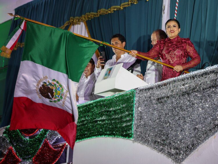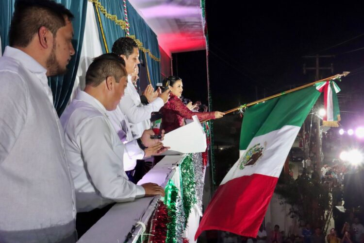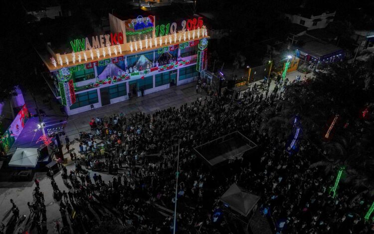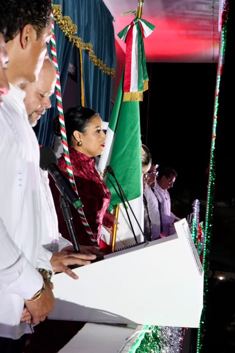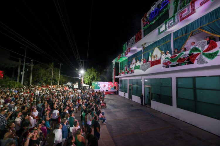 Puerto Morelos, Quintana Roo, 15 de septiembre de 2025.- Mas de 5 mil portomorelenses vibraron en la gran fiesta mexicana celebrada en Puerto Morelos en el marco del 215 Aniversario del Grito de Independencia encabezada por la presidenta Blanca Merari Tziu Muñoz.