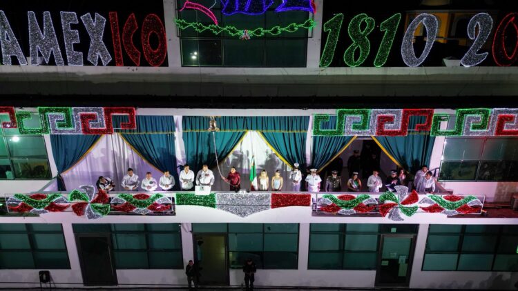 Desde el Palacio Municipal en la cabecera municipal, ubicado en la avenida Joaquín Zetina Gasca, la alcaldesa llevó a cabo el acto protocolario, dónde se realizaron los honores a la Bandera, y recibió el lábaro patrio, acompañada de funcionarios, regidores e invitados especiales.