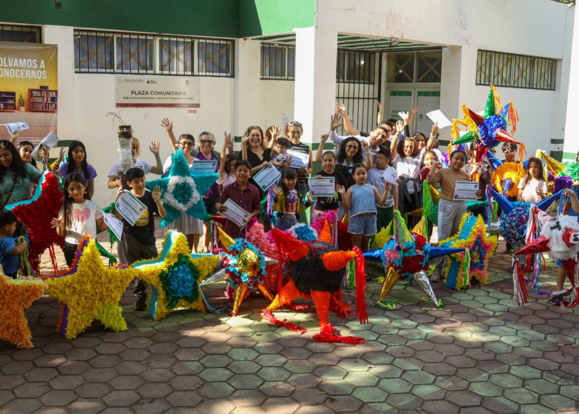 Puerto Morelos, Quintana Roo, 10 de diciembre de 2025.— El Instituto Municipal de Educación de Puerto Morelos clausuró el Taller de Creación de Piñatas, que se desarrolló en forma simultánea en las bibliotecas “Maurilio Sánchez Jiménez”, de esta cabecera municipal, y “Pablo Pancardo Vargas”, de Leona Vicario, como parte de los esfuerzos por conservar y fortalecer esta tradición, que distingue a la temporada navideña.
