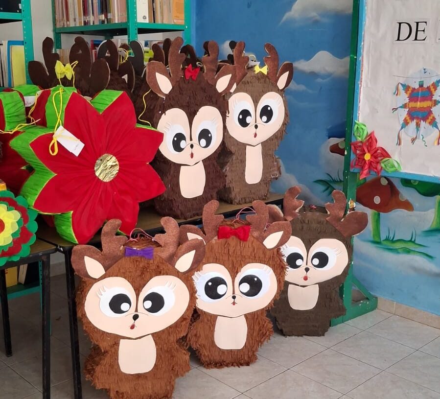 Al finalizar el evento, se entregaron reconocimientos a los niños que tomaron parte en el taller, quienes pusieron en exhibición las piñatas elaboradas, entre las que destacaban estrellas de siete y cinco picos, venados y una corona.