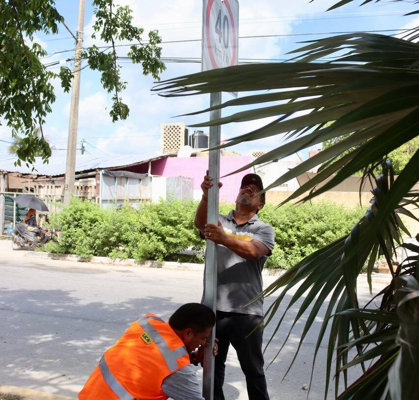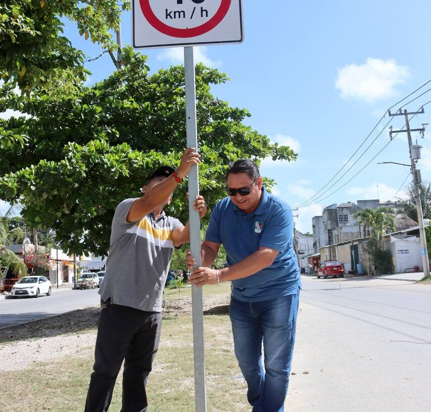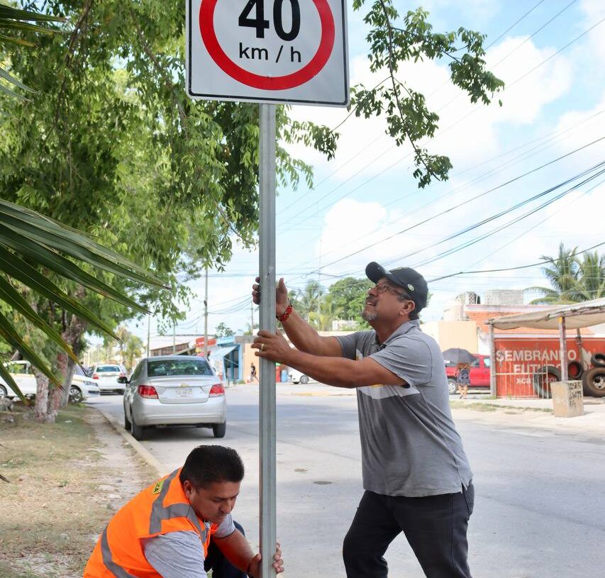 El funcionario municipal explicó que los letreros instalados recientemente en puntos estratégicos son, sobre todo, de límites de velocidad y cruce de peatones, además se colocaron reductores de velocidad en distintas vialidades y pintura en zonas de ascenso y descenso de pasaje del transporte público de Puerto Morelos.