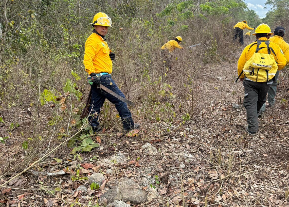 “Cabe señalar que las brigadas reciben machetes, rastrillos, cascos, googles y motosierra; en caso de que el fuego se salga de control, se solicita apoyo a la Conafor, que nos envía personal y maquinaria”. Explicó que el ejido Leona Vicario participa con una brigada de cinco elementos, con equipo y vehículo, para apoyar las labores de combate.