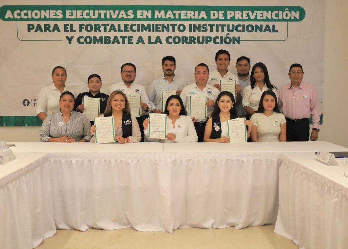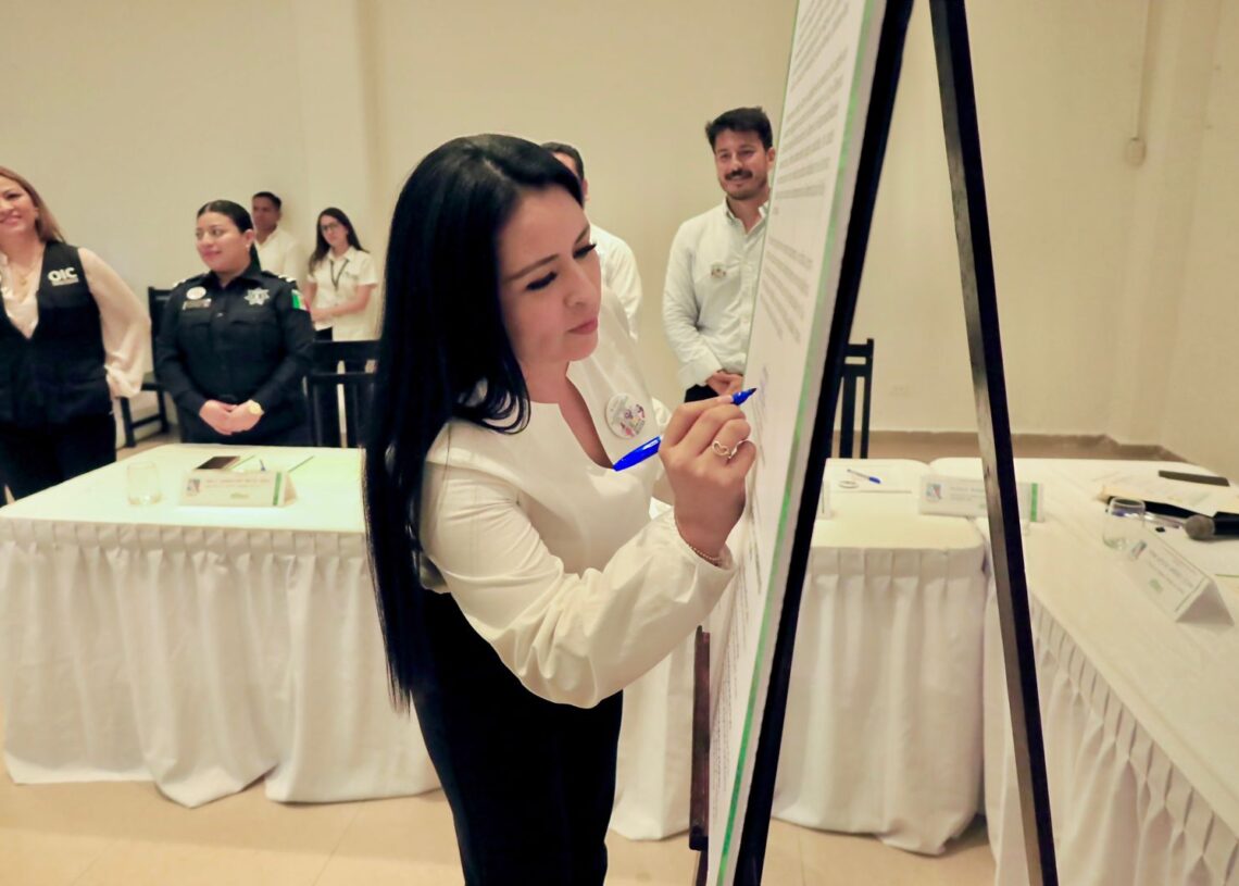 Junto con la Presidenta Municipal y los demás integrantes del Comité de Ética e Integridad —Luz Jhannel Silva Salas, directora de la Función Pública y secretaria del Comité; Rodrigo Andrés Ruiz Álvarez, Oficial Mayor; regidor Gonzalo Calderón Poot; Santos Julián Medina Cab, director de Recursos Humanos; José María Vera Uribe, de Diversidad Sexual; Areli Guadalupe Mejía Pool, de Asuntos Internos de la Secretaría de Seguridad Ciudadana y Arlette Escudero Ordóñez, del Instituto Municipal de la Mujer, vocales—, la funcionaria firmó la carta compromiso del Comité.
