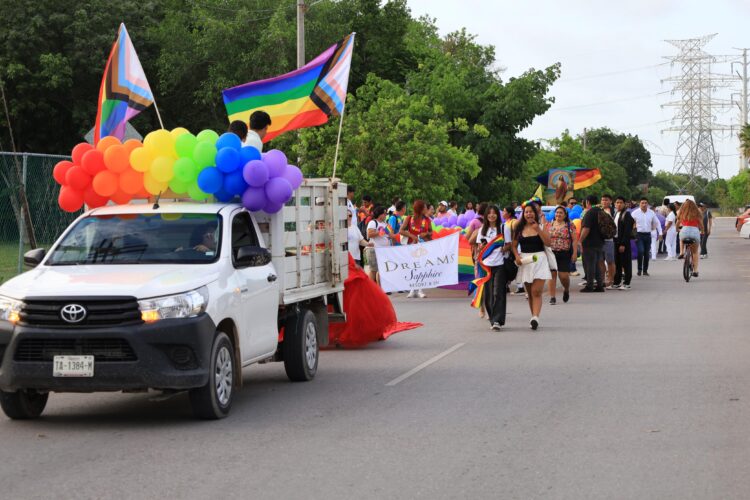 Puerto Morelos, 21 de junio de 2025.– Con la participación de decenas de personas, principalmente integrantes de la comunidad LGBT+, esta tarde se realizó la Marcha del Orgullo, que recorrió parte de la avenida Joaquín Zetina Gasca.