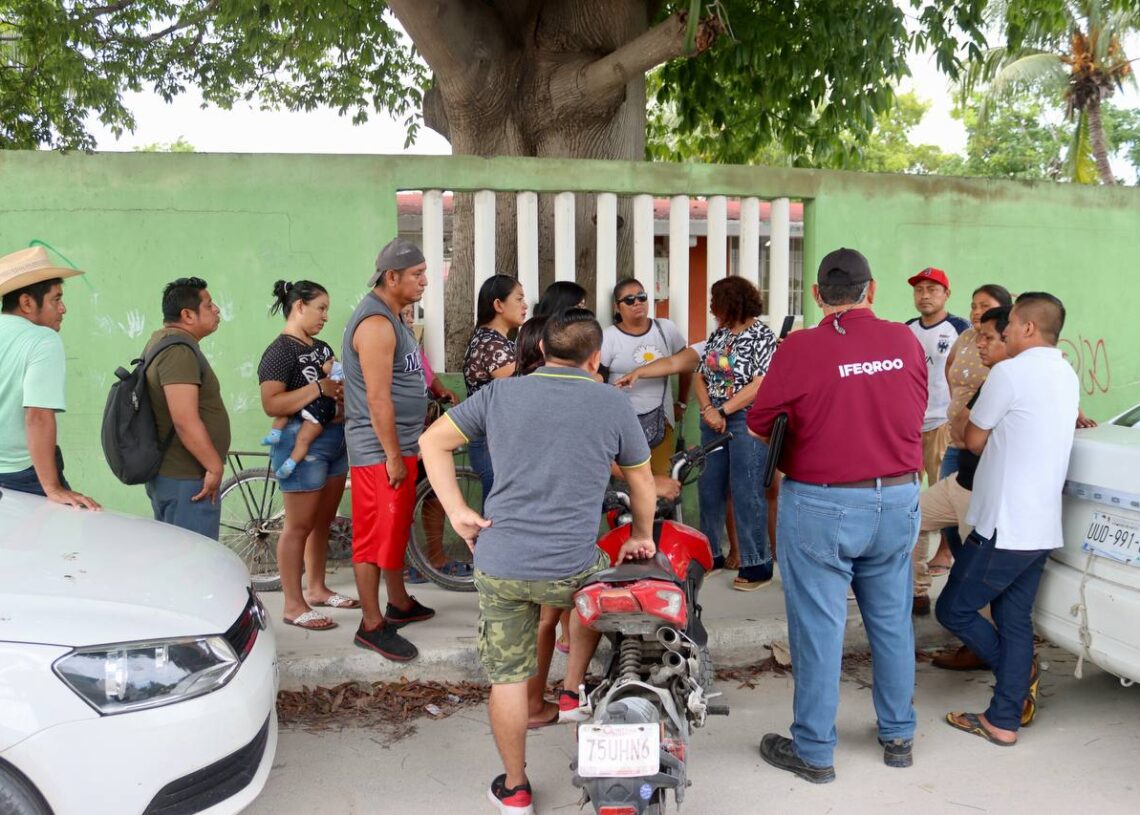 Puerto Morelos, Quintana Roo, 13 de septiembre de 2023.— Luego de una reunión con autoridades municipales encabezadas por el secretario general del Ayuntamiento, José de Jesús Espinosa Payán, y una inspección al transformador que regula la tensión de la corriente que la CFE abastece a la Telesecundaria “Ramón Bravo Prieto”, el Instituto de Infraestructura Física Educativa del Estado de Quintana Roo (Ifeqroo), por conducto del revisor técnico de obra, Juan Manuel Carrillo Almanza, dictaminó que es necesario gestionar el cambio por uno de mayor capacidad.