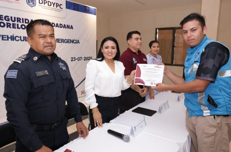 Puerto Morelos, Quintana Roo, 23 de julio.- “La capacitación, sin duda, es lo que nos permite ser mejores servidores públicos y para eso cuenten con nosotros”, dijo hoy la presidenta municipal Blanca Merari Tziu Muñoz, al clausurar el Curso de Conducción de Vehículos de Emergencia, impartido por instructores de la Secretaría Estatal de Salud (Sesa).