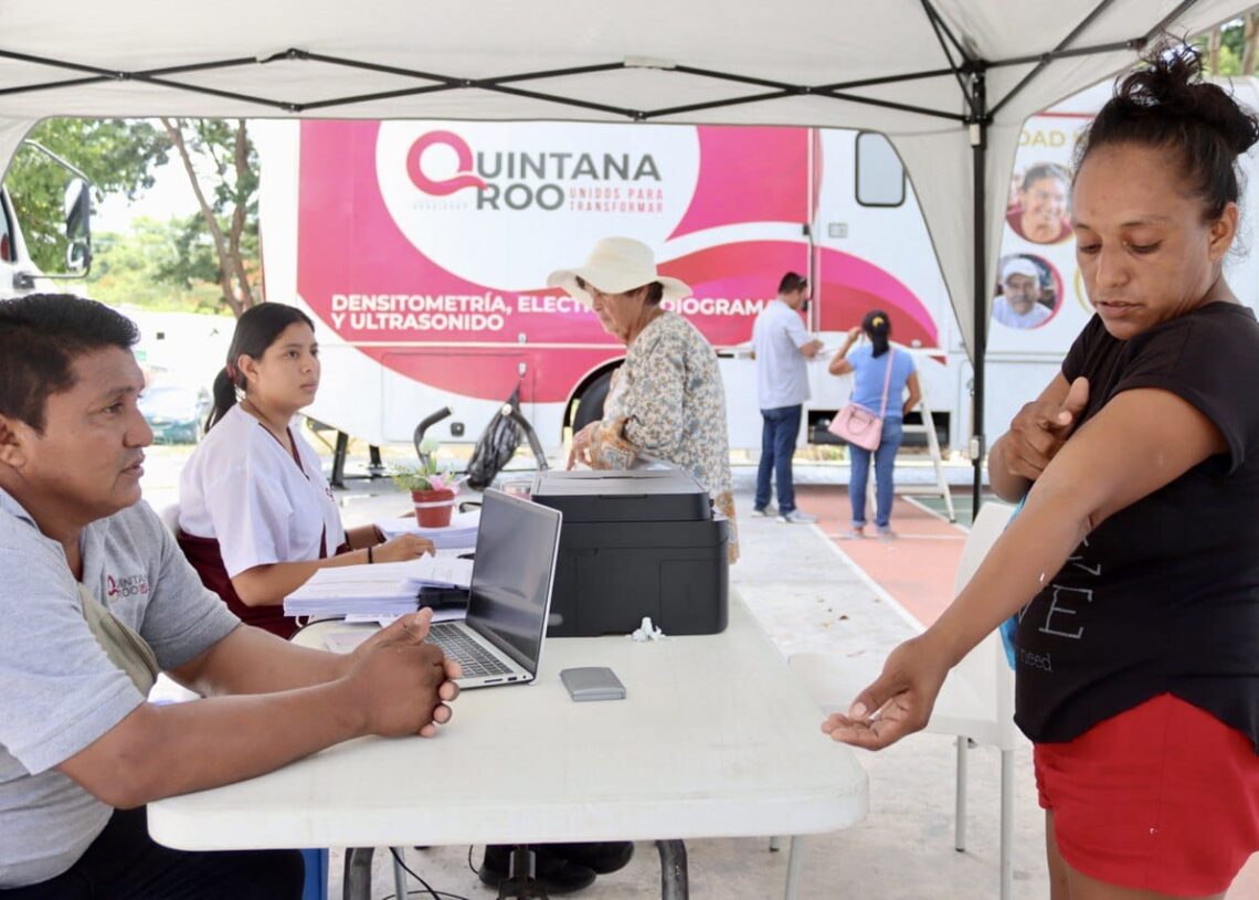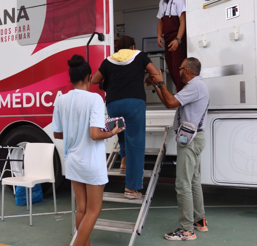 Puerto Morelos, Quintana Roo, 20 de agosto de 2023.- Como parte de la estrecha coordinación que ha consolidado la presidenta municipal de Puerto Morelos, Blanca Merari Tziu Muñoz, con el gobierno estatal, se llevaron a cabo las Caravanas de Salud, a cargo de los Servicios Móviles de Atención Médica, en el domo deportivo de la colonia Zetina Gasca.