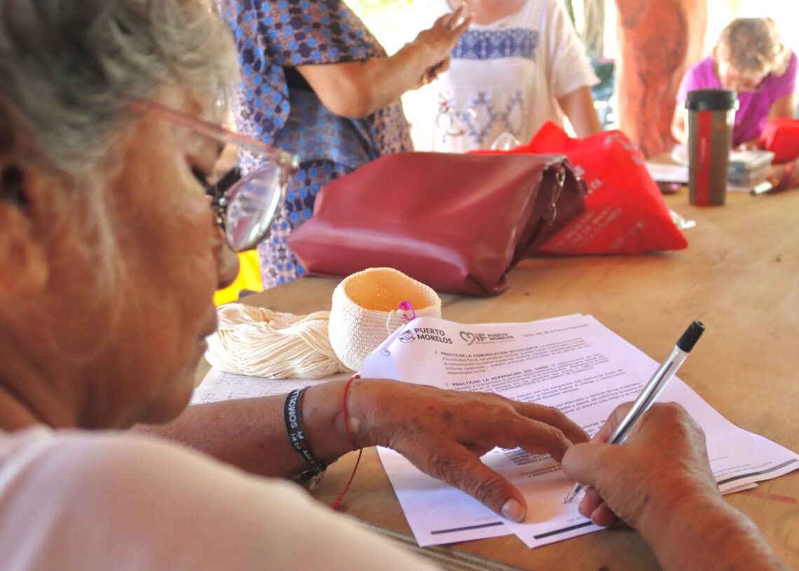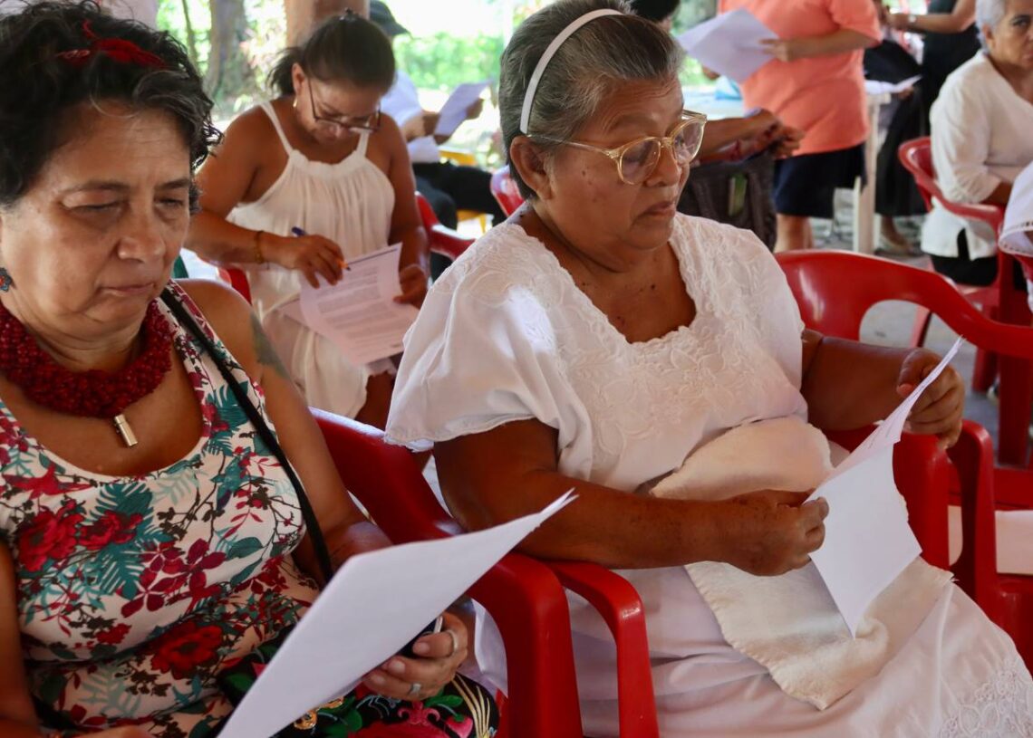 Como parte de la jornada, personas de la tercera edad firman el Reglamento Interior de la Casa del Adulto Mayor "Nohoch Uinic", con el objetivo de fomentar la sana convivencia