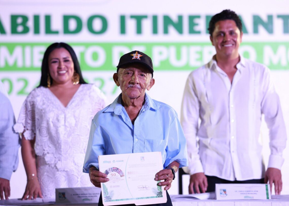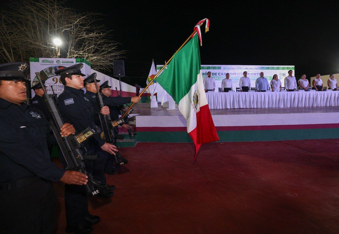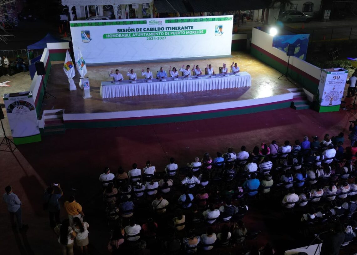 Puerto Morelos, Quintana Roo, 8 de marzo de 2026.-En el marco de la XXV Sesión Extraordinaria de Cabildo Itinerante, realizada en el parque principal de la delegación Leona Vicario, el Ayuntamiento de Puerto Morelos conmemoró el 90 aniversario del cambio de nominación de la antigua Hacienda Santa María, hecho histórico que dio identidad y reconocimiento a esta comunidad.