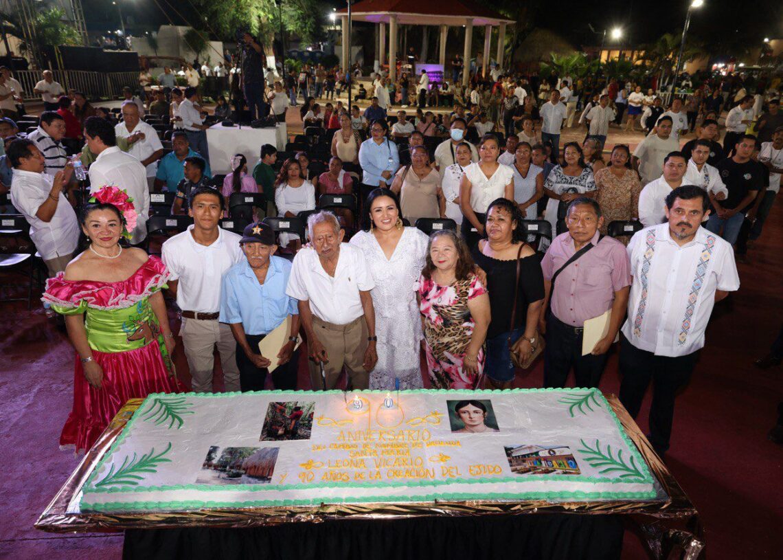 Durante la ceremonia, la presidenta municipal Blanca Merari Tziu Muñoz recordó que la Hacienda Santa María fue fundada en 1902 y que fue en 1936 cuando el entonces presidente de México, Lázaro Cárdenas del Río, decretó el cambio de nombre de la comunidad para reconocerla como Leona Vicario, destacada figura de la lucha por la Independencia de México.