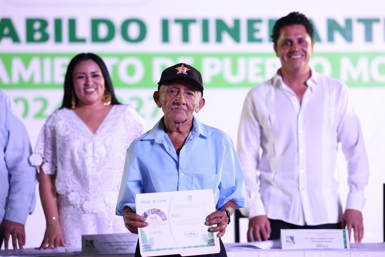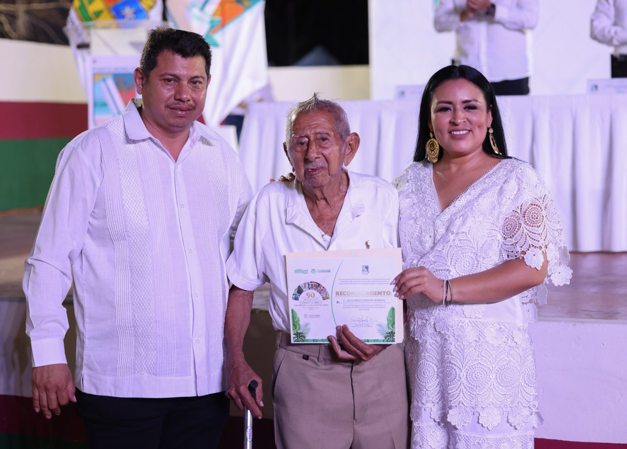 Puerto Morelos, Quintana Roo, 8 de marzo de 2026.-En el marco de la XXV Sesión Extraordinaria de Cabildo Itinerante, realizada en el parque principal de la delegación Leona Vicario, el Ayuntamiento de Puerto Morelos conmemoró el 90 aniversario del cambio de nominación de la antigua Hacienda Santa María, hecho histórico que dio identidad y reconocimiento a esta comunidad.