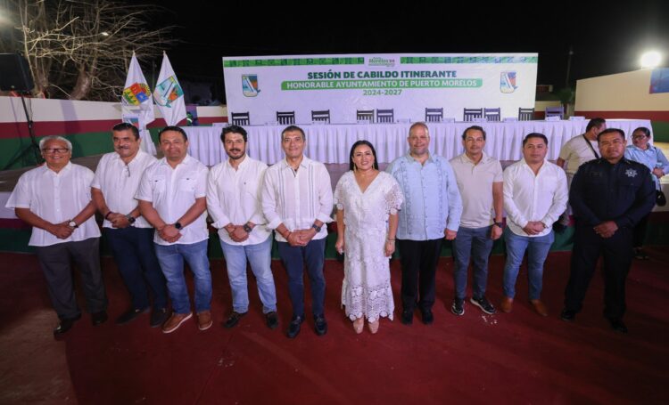Puerto Morelos, Quintana Roo, 8 de marzo de 2026.-En el marco de la XXV Sesión Extraordinaria de Cabildo Itinerante, realizada en el parque principal de la delegación Leona Vicario, el Ayuntamiento de Puerto Morelos conmemoró el 90 aniversario del cambio de nominación de la antigua Hacienda Santa María, hecho histórico que dio identidad y reconocimiento a esta comunidad.