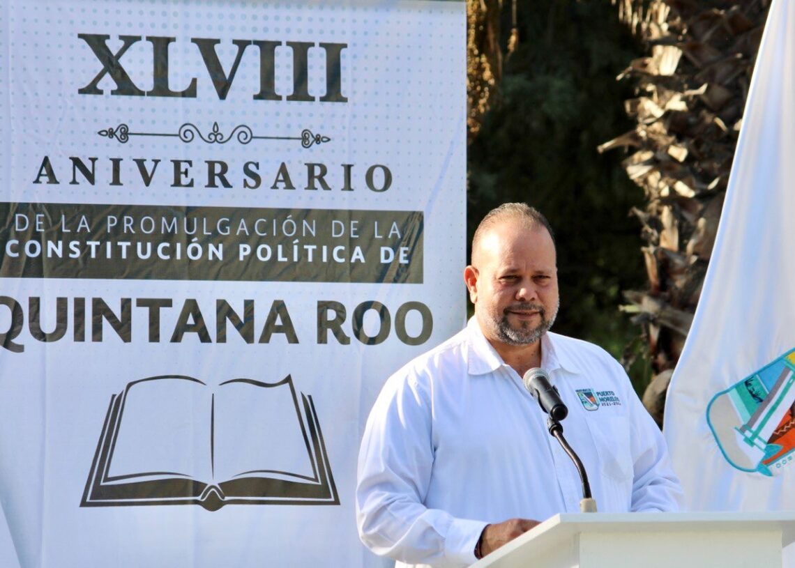 Por su parte, Miguel Ángel Zetina Cuevas, cronista pionero de Puerto Morelos, quien fue el encargado de leer la reseña histórica, indicó que la promulgación de la Constitución Política del Estado, realizada hace exactamente 48 años, representó la culminación de una larga lucha por parte de varias generaciones de quintanarroenses y el inicio de una nueva etapa, que ha permitido el desarrollo y crecimiento de esta sociedad sobre la base de la legalidad.