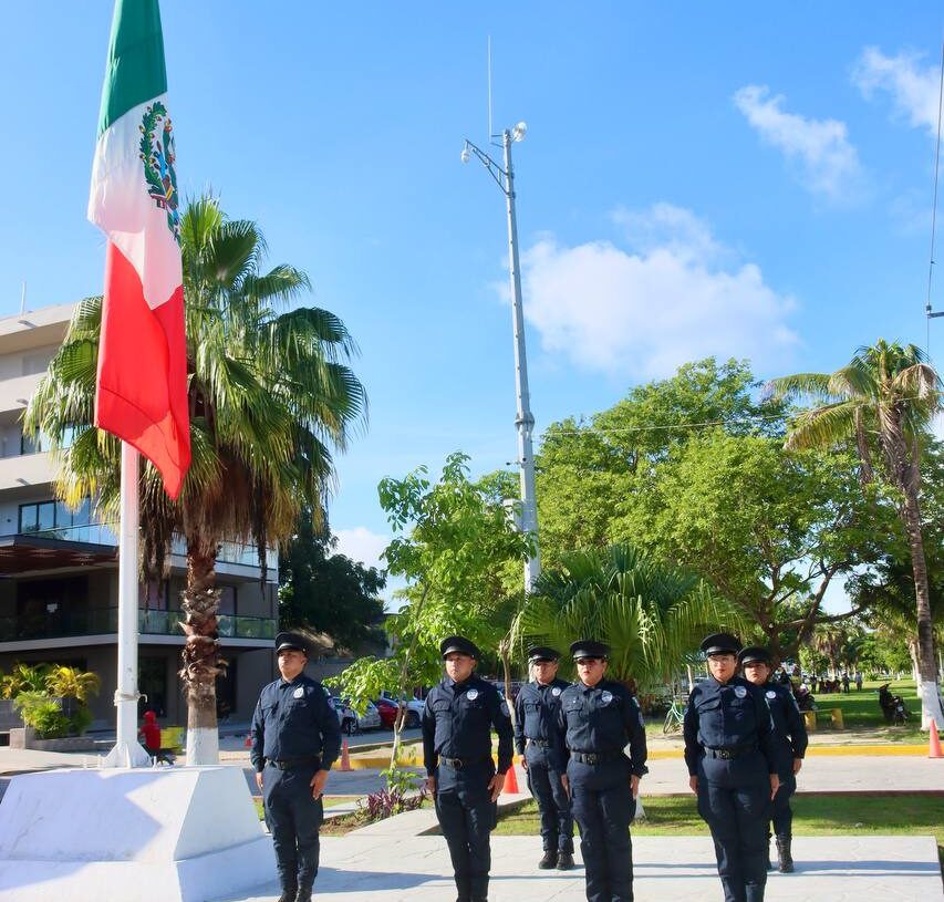 Durante el evento, que tuvo lugar en la Plaza Cívica frente al Palacio Municipal, el joven estudiante del Colegio de Bachilleres plantel Puerto Morelos, Julio Daniel Alvarado Sulub, fue el encargado de leer la reseña histórica de tan importante acto, en el que los cadetes defendieron a nuestro país de la invasión de tropas extranjeras.