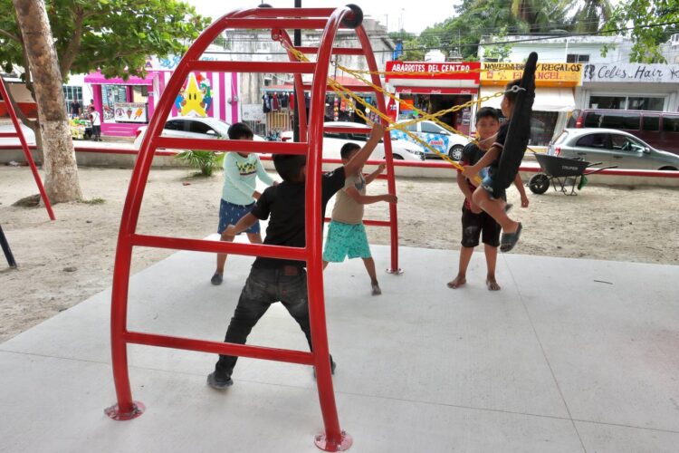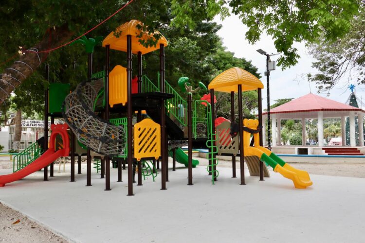 Puerto Morelos, Quintana Roo,18 de enero de 2026.- La presidenta municipal de Puerto Morelos, Blanca Merari Tziu Muñoz, realizó un recorrido de supervisión por el parque central de la colonia Zetina Gasca, donde se renovaron y rehabilitaron los juegos infantiles, en beneficio de niñas, niños y familias de la zona.