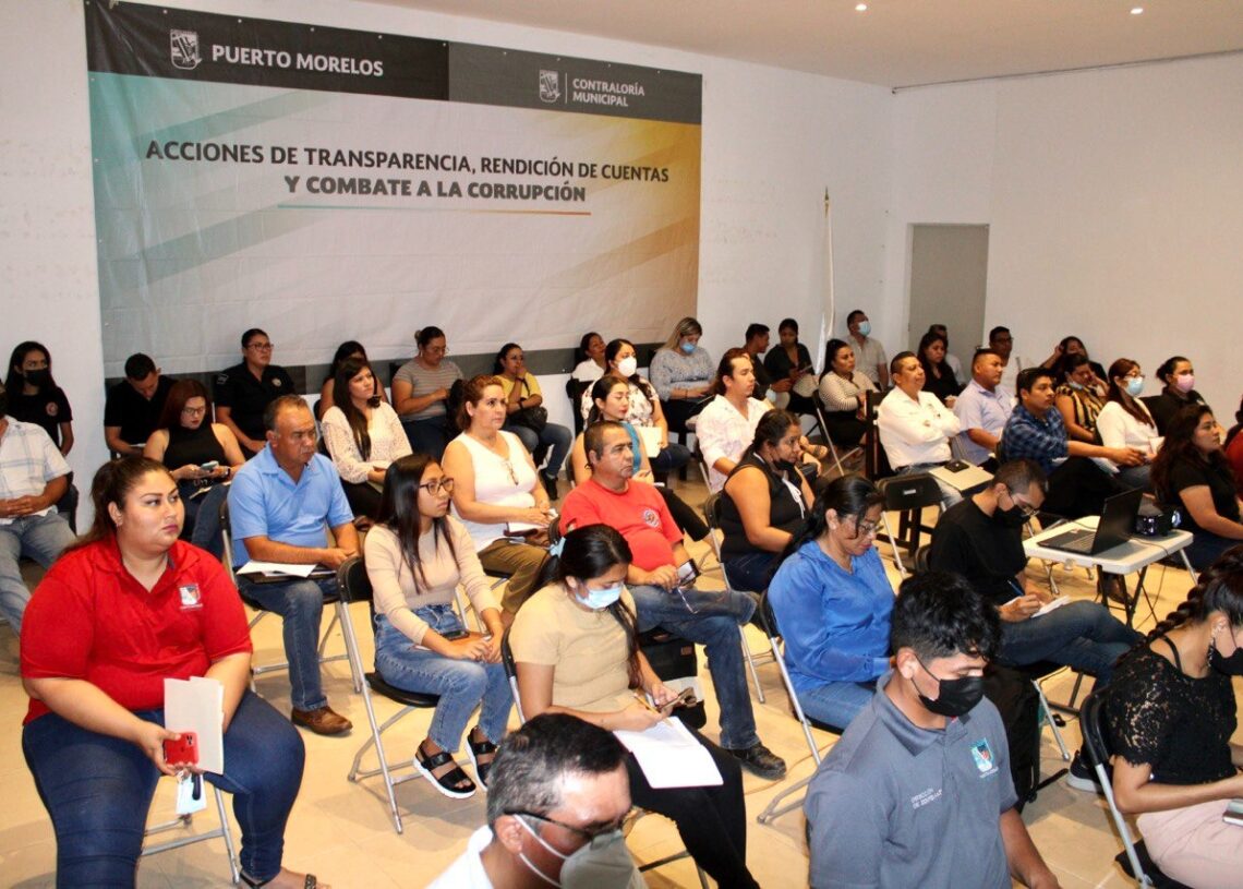 Puerto Morelos, Quintana Roo, 10 de agosto de 2022.- El gobierno de la presidenta municipal Blanca Merari Tziu Muñoz continúa con la capacitación de los servidores públicos, a fin de garantizar la transparencia, la rendición de cuentas y el combate a la corrupción en todas las áreas de la administración pública local.