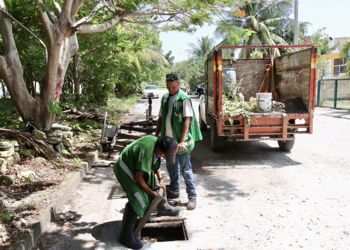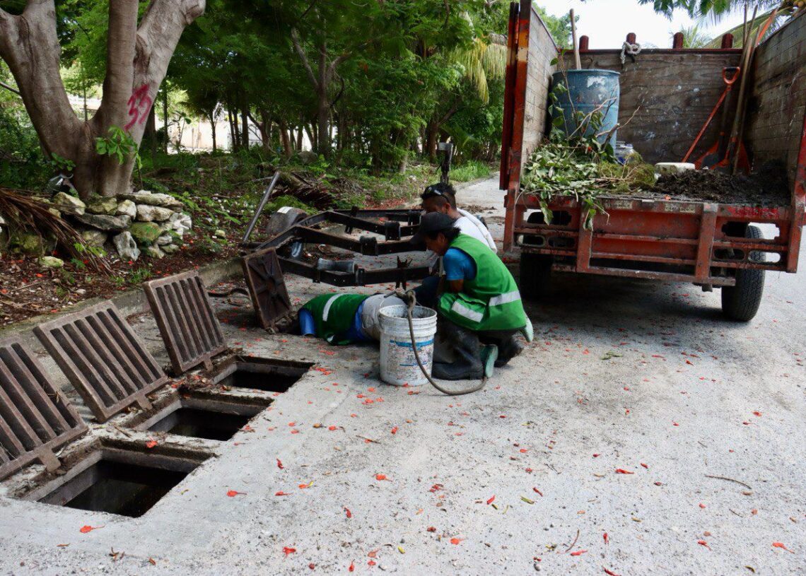 Puerto Morelos, Quintana Roo, 5 de octubre de 2025.– La presidenta municipal Blanca Merari Tziu Muñoz informó que desde el pasado mes de septiembre se han reforzado los trabajos de mantenimiento y limpieza de los pozos de absorción, rejillas y areneros, a fin de mantener en óptimas condiciones la red de drenaje pluvial durante la temporada de lluvias y evitar afectaciones a la ciudadanía.