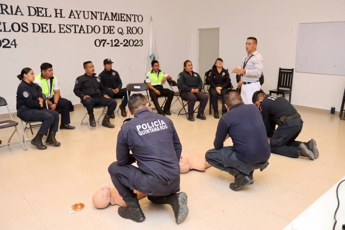 Puerto Morelos, Quintana Roo, 1 de enero de 2024.- La capacitación de los elementos de la Secretaría municipal de Seguridad Pública y Tránsito continuará como tema prioritario en este año que recién inicia, ya que de ello depende el saber actuar a tiempo ante cualquier emergencia, destacó el titular de la dependencia, Alfredo Valdez de León.