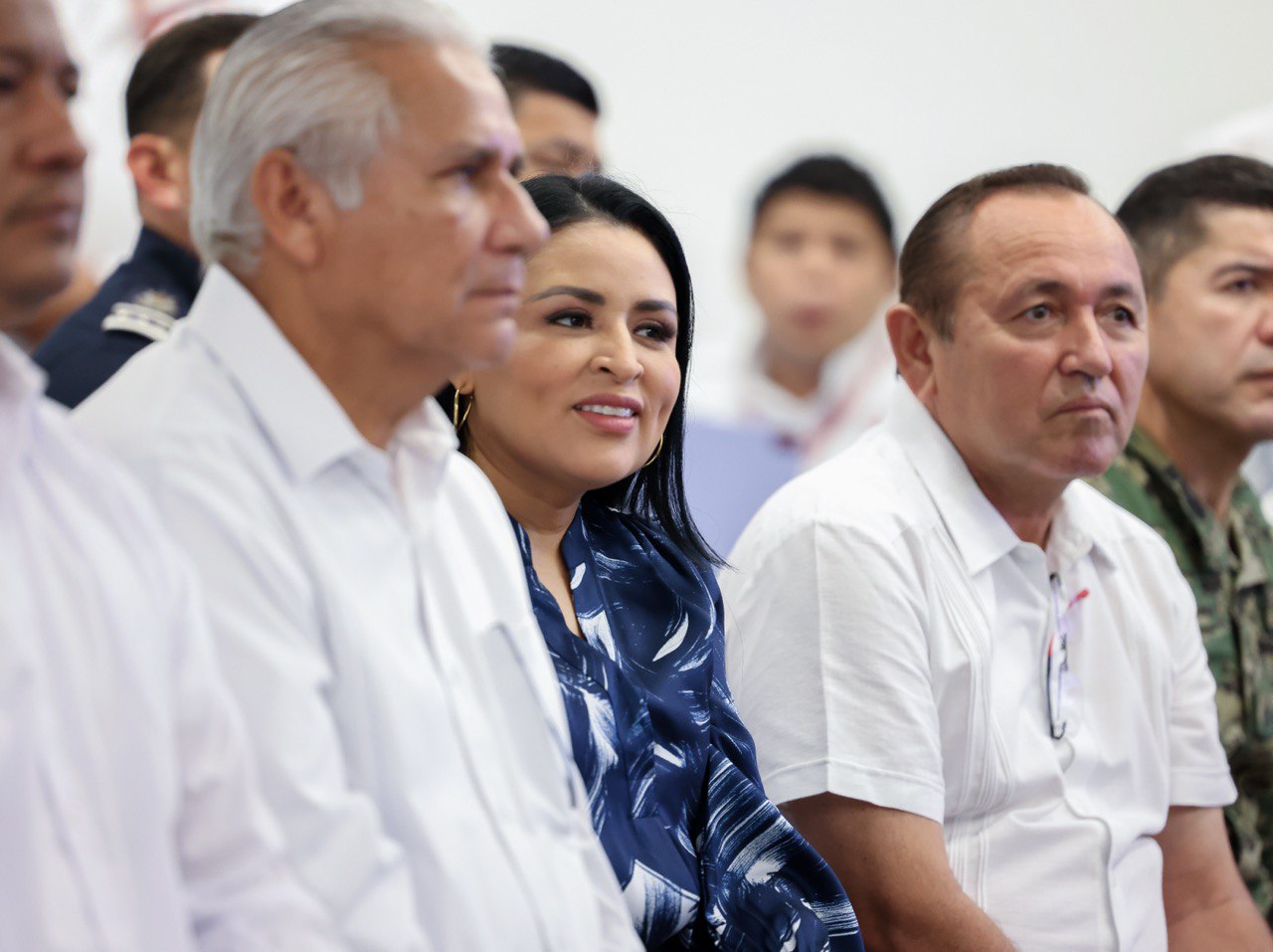 Cabe destacar que estuvieron presentes la presidenta municipal de Benito Juárez, Ana Paty Peralta; de Lázaro Cárdenas, Josué Nivardo Mena Villanueva; de José María Morelos, Erick Borges Yam; la secretaria de Gobierno Cristina Torres Gómez; el titular de la FGE Raciel López Salazar; de la 34 Zona Militar, General Fidel Mondragón Rivero; Quinta Región Naval Almirante Guadalupe Juan José Bernal Méndez; entre otros funcionarios.